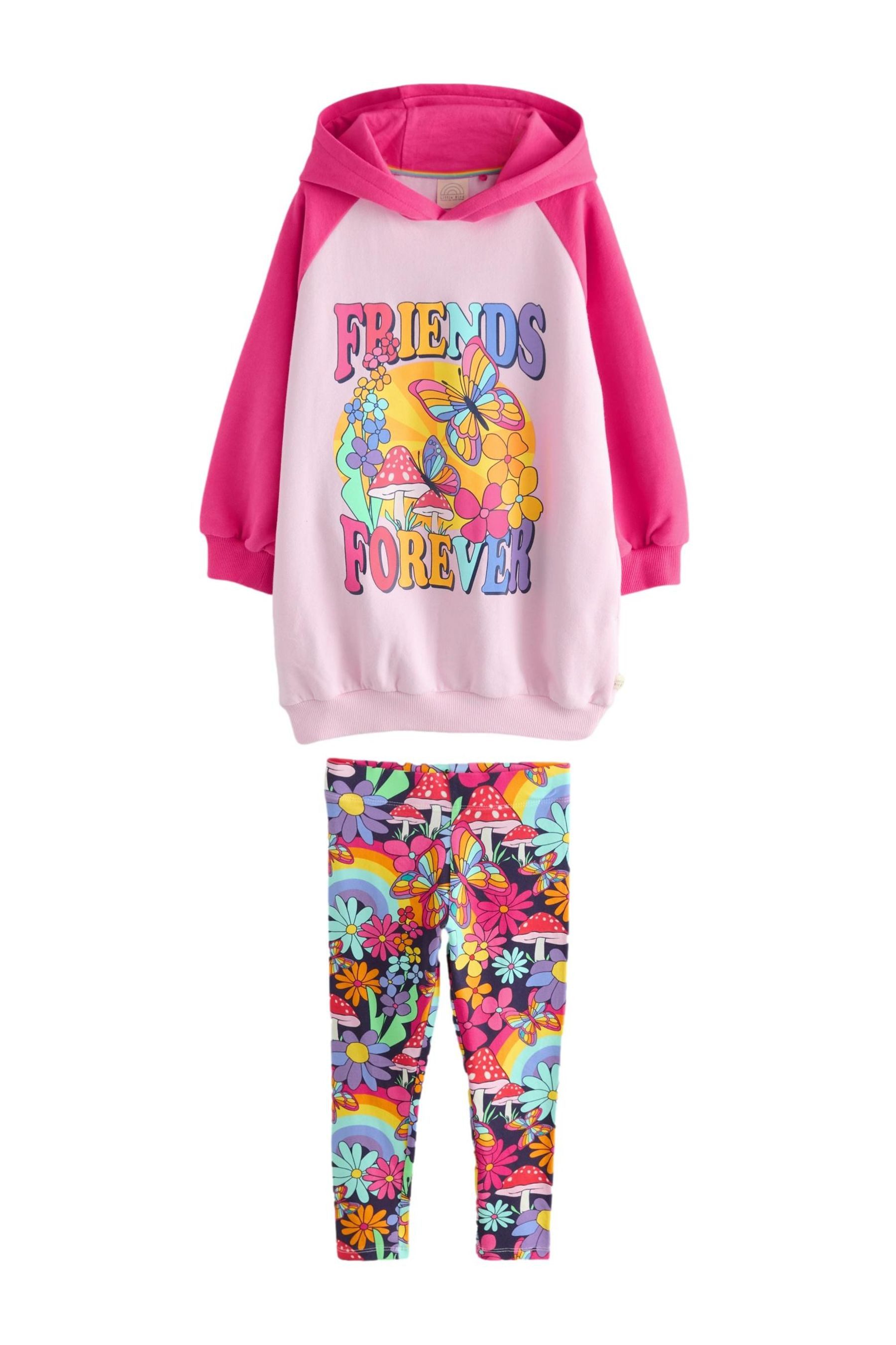 Materialzusammensetzung | Kapuzensweatshirt, Hauptmaterial: 100 % Baumwolle. Bündchen: 96 % Baumwolle, 4 % Elasthan. Leggings, Hauptmaterial: 93 % Baumwolle, 7 % Elasthan. |