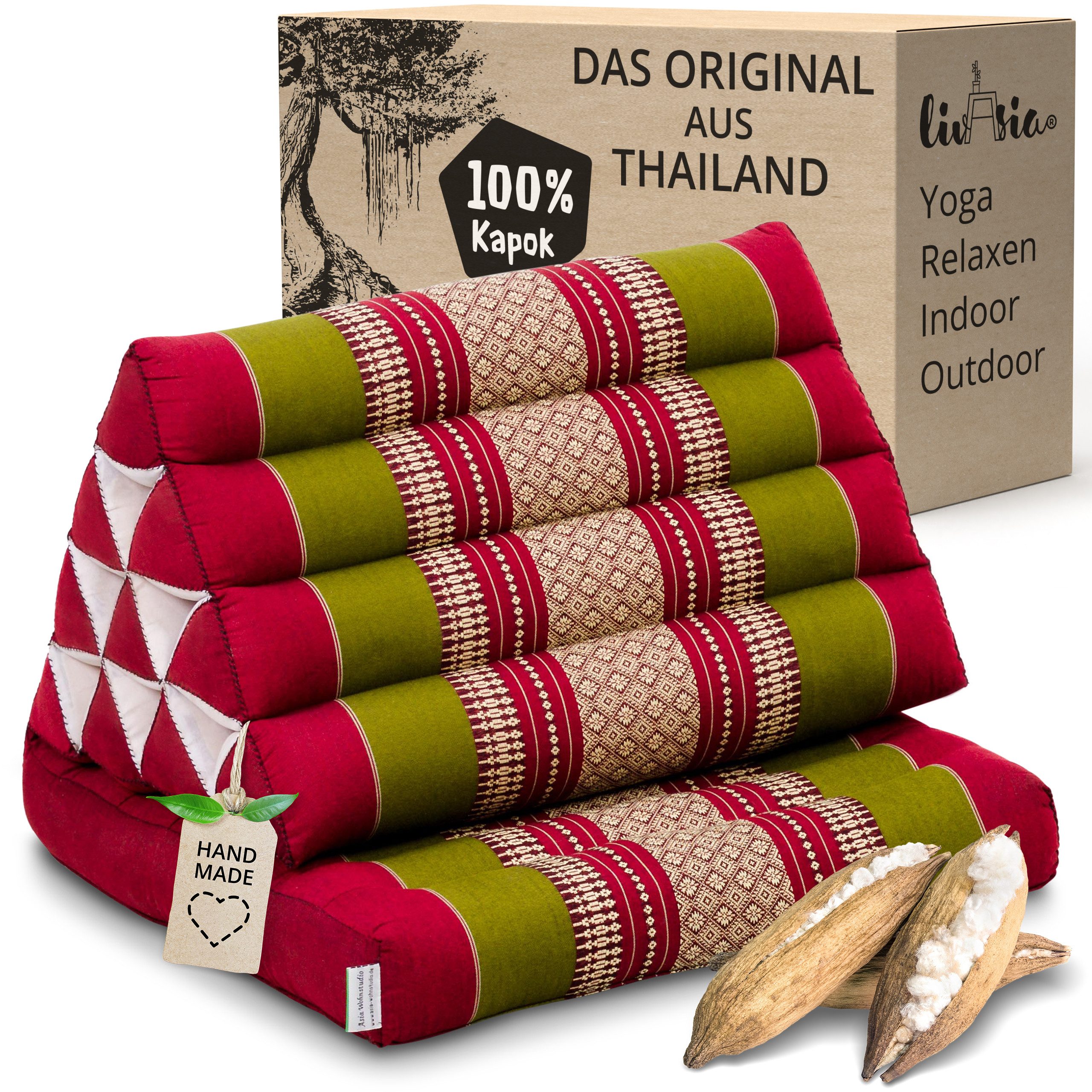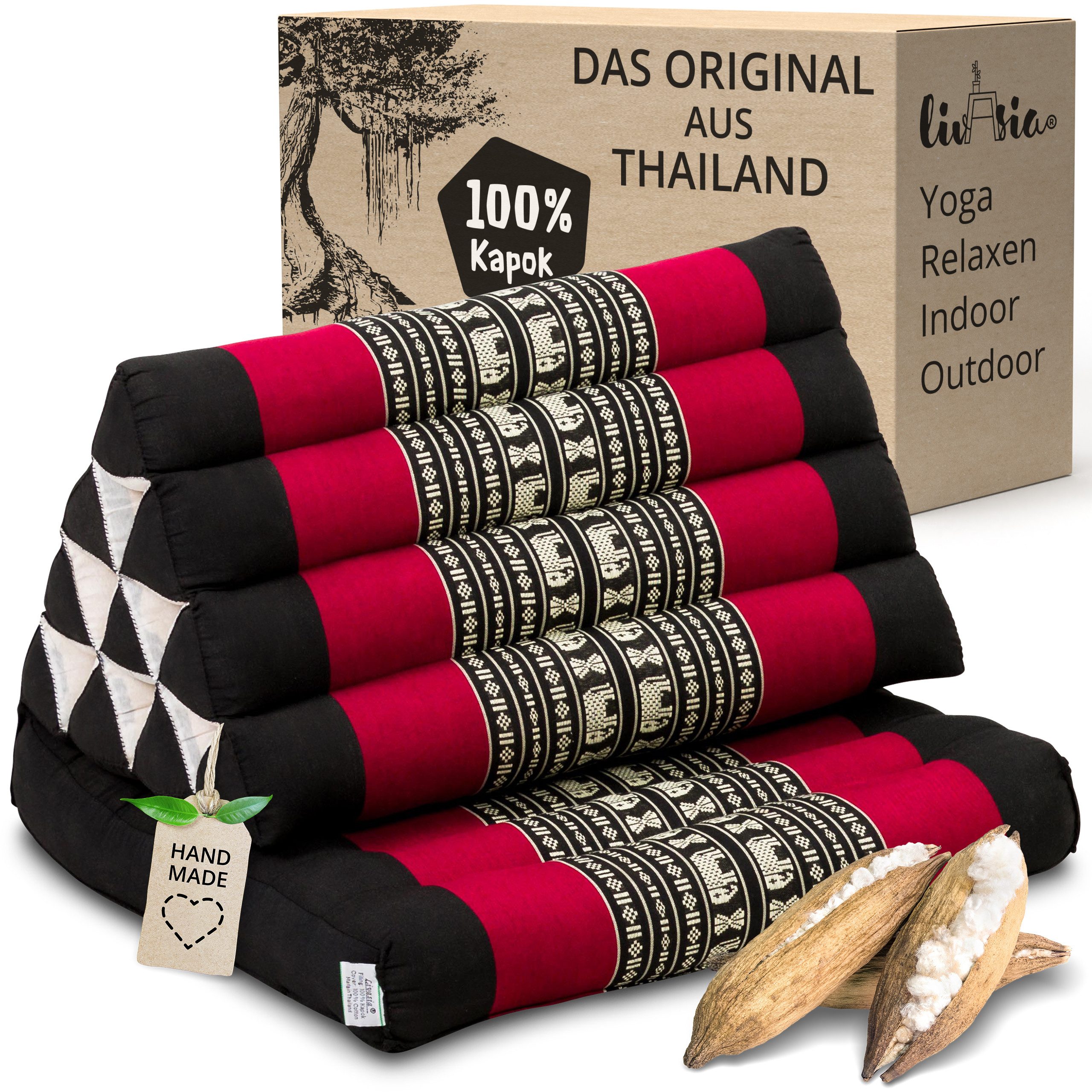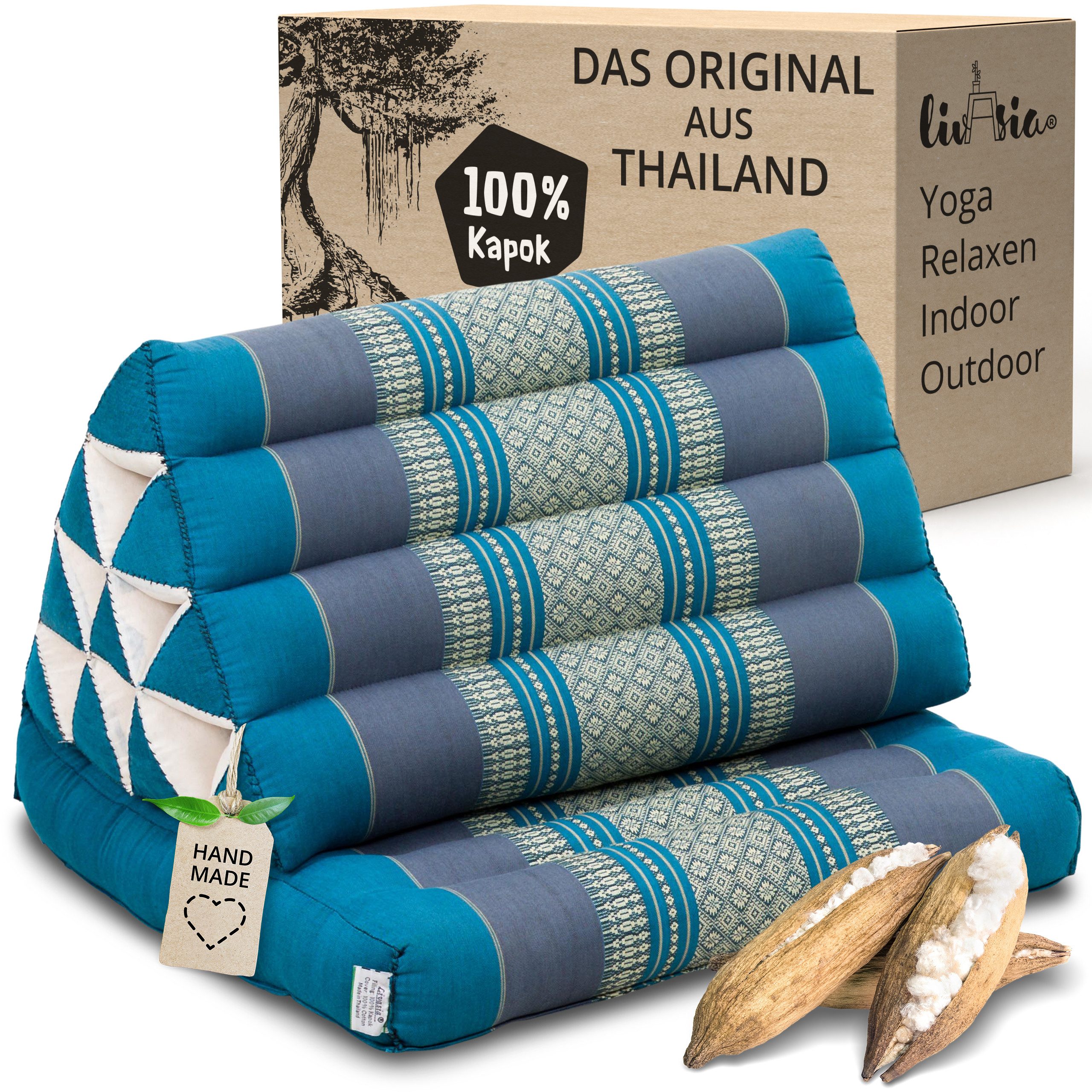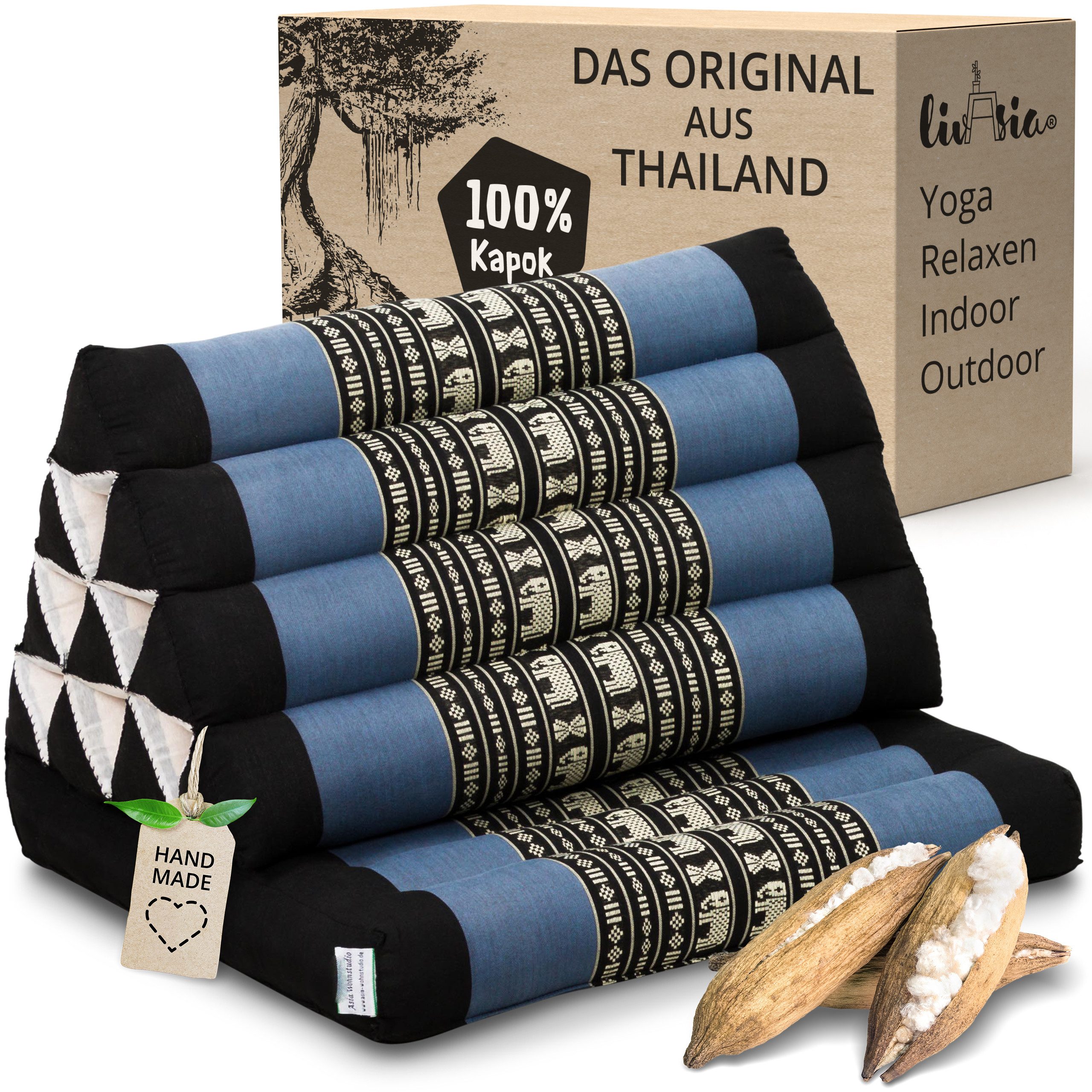 Deine Entspannungsinsel begleitet deinen Alltag und den deiner ganzen Familie. Ob im Wohnzimmer, Schlafzimmer, der Leseecke, im Kinderzimmer – mit dem thailändischen Klassiker zieht Gemütlichkeit in jeden Raum ein. Das praktische Kissen ist aber auch für jedes Outdoor-Abenteuer bereit. Die natürliche Kapokfüllung ist wasserabweisend und hält die Kälte fern. So dient das Kissen auch im Garten, auf dem Balkon und im Camper oder beim Zelten als praktische Sitzgelegenheit. Die mobile Sonnenliege, die Matte für Meditation und Yoga, die Lounge für unterwegs – das multifunktionelle Thaikissen ist für Asien-Liebhaber und Minimalisten der perfekte Begleiter.