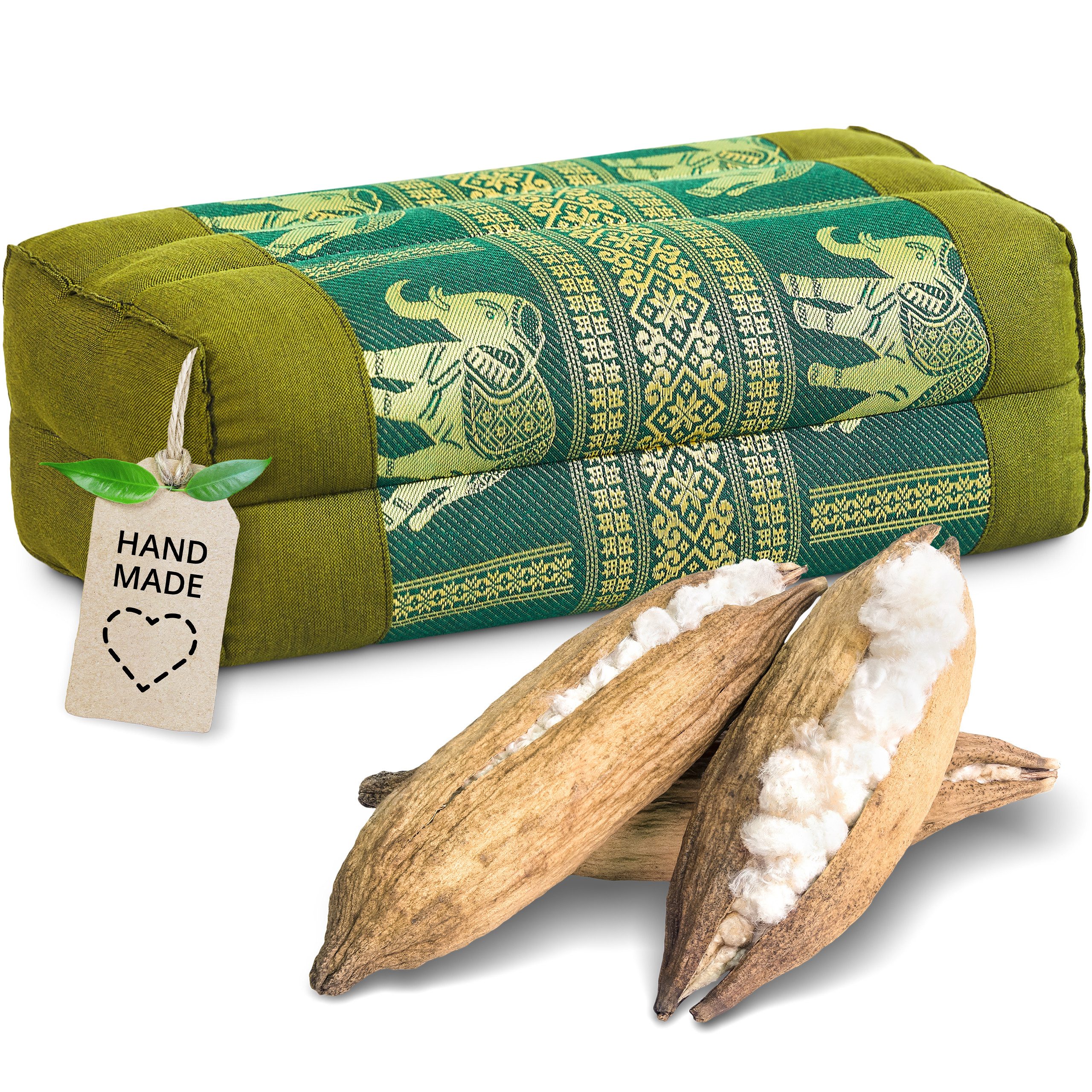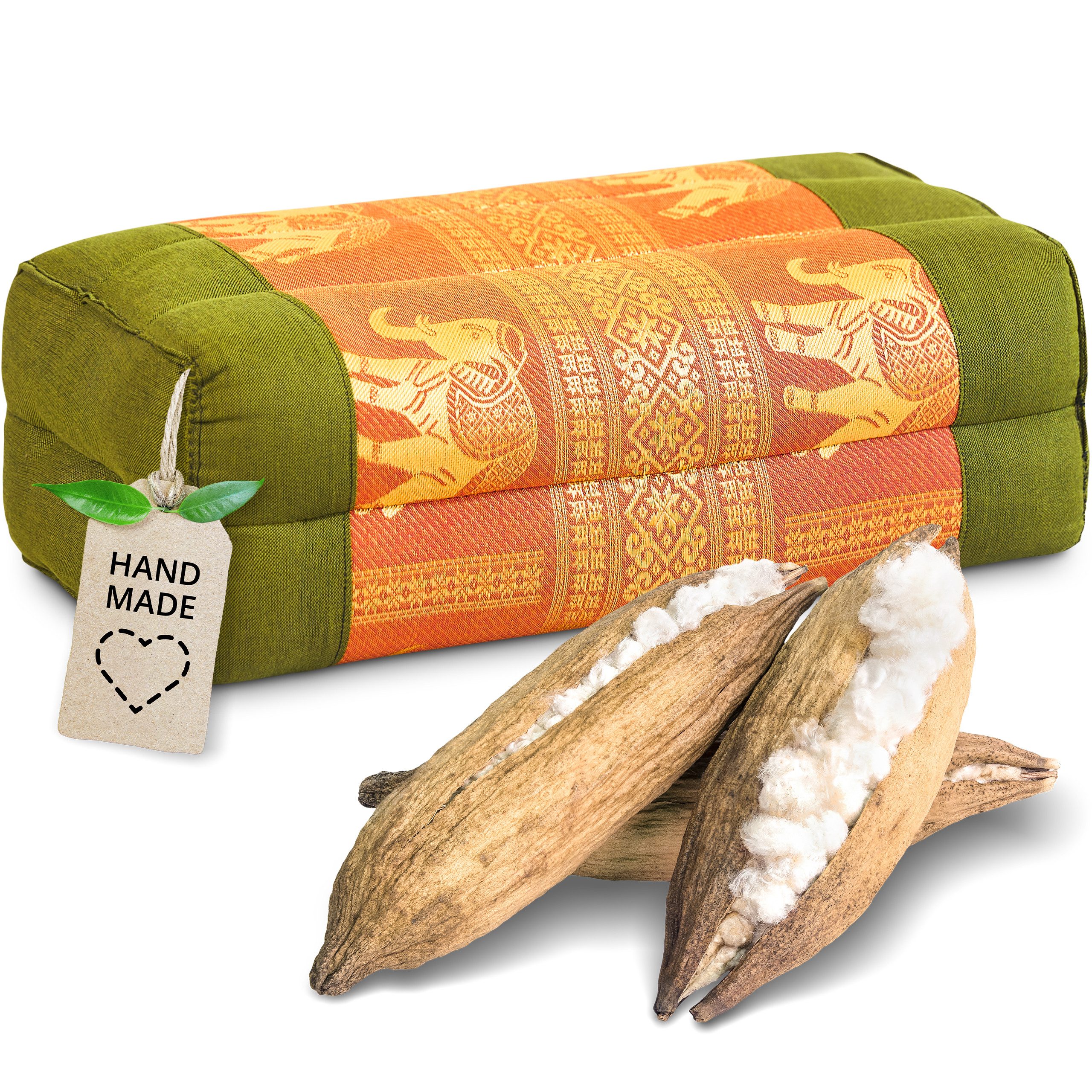 Ob du Yoga in deinen eigenen vier Wänden praktizierst, draußen in der Natur abschaltest oder gemeinsam mit Gleichgesinnten im Yoga-Studio deine Routine pflegst, das Blockkissen ist durch seine handliche Form mobil und lässt sich überall hin mitnehmen. Selbst im kleinsten Camper findet das Bolster seinen Platz. Auch als Sitzkissen für Schneidersitz oder kniende Haltungen und als Nackenkissen zum Relaxen lässt sich das Kissen aus Thailand nutzen.