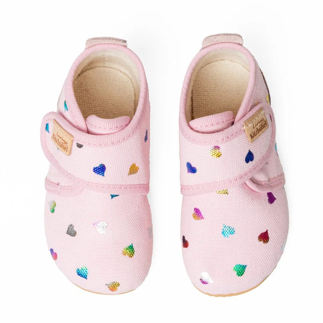 Kinderhausschuh Hermi Herzchen mit Glitzer-Herz Applikationen.