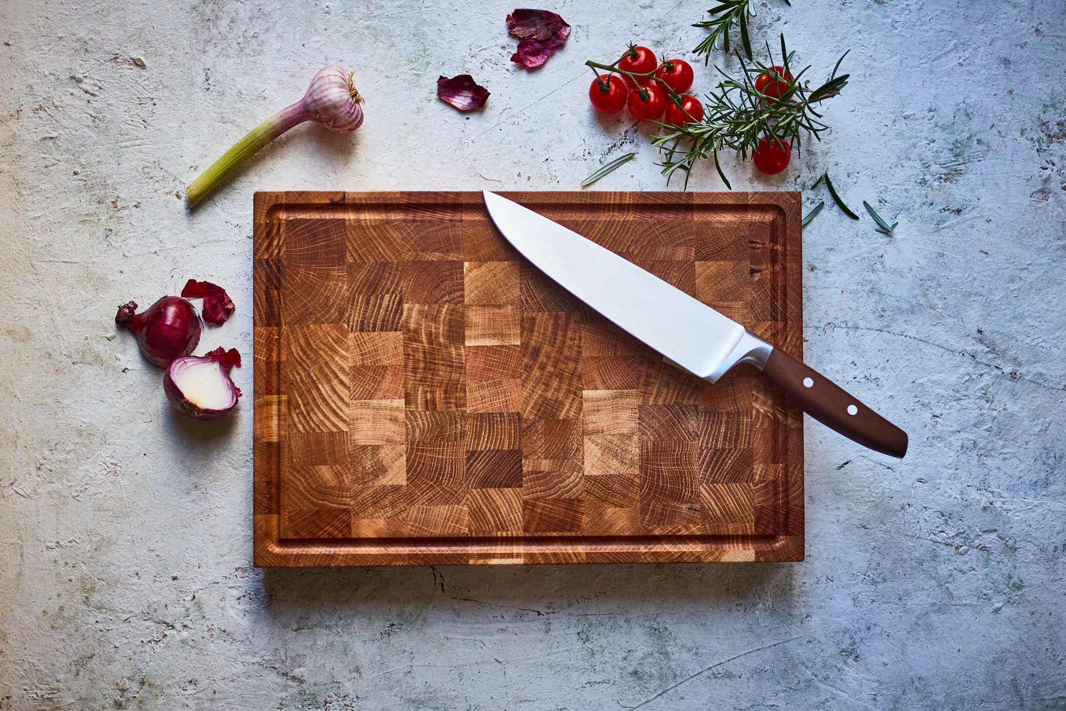 Schneidebrett aus Eiche - Hochwertige Qualität verarbeitet aus Hirnholz Entdecken Sie das ultimative Schneidebrett für Ihre Küche: unser Schneidebrett aus Eiche, gefertigt aus verleimtem Hirnholz. Dieses erstklassige Küchenutensil ist nicht nur ein Blickfang, sondern bietet auch außergewöhnliche Funktionalität und Langlebigkeit. Warum unser Schneidebrett? Langlebigkeit: Dank der Hirnholz-Verleimung ist dieses Schneidebrett besonders widerstandsfähig und langlebig. Es hält selbst den anspruchsvollsten Schneidarbeiten stand. Schonung der Messer: Das Eichenholz ist sanft zu Ihren Messern und hilft, deren Schärfe länger zu bewahren. Stilvolles Design: Die natürliche Maserung des Eichenholzes macht jedes Schneidebrett zu einem Unikat und verleiht Ihrer Küche eine rustikale Eleganz. Vielfältige Anwendung: Egal ob für das Schneiden von Gemüse, Fleisch oder Brot - dieses Schneidebrett ist der ideale Begleiter in Ihrer Küche. Perfekt für jede Küche Unser Schneidebrett aus Eiche eignet sich für Hobbyköche ebenso wie für Profiköche. Es bietet eine stabile und großzügige Arbeitsfläche, die für sämtliche Schneidearbeiten genutzt werden kann. Die verschiedenen Größenoptionen ermöglichen es Ihnen, das perfekte Brett für Ihre individuellen Anforderungen zu wählen. Pflegehinweise Um die Lebensdauer Ihres Schneidebretts zu maximieren, empfehlen wir, es regelmäßig mit einem feuchten Tuch abzuwischen und gelegentlich mit speziellem Holzöl zu behandeln. Vermeiden Sie das Einweichen in Wasser und die Reinigung in der Spülmaschine. Erleben Sie die perfekte Kombination aus Ästhetik und Funktionalität mit unserem Schneidebrett aus Eiche. Bestellen Sie noch heute und bringen Sie ein Stück Natur in Ihre Küche!