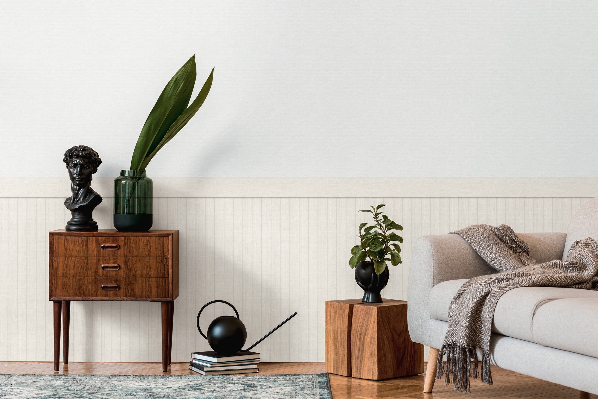 Hinweis Art Tapete | Vliestapeten: Das Material ist dimensionsstabil und kann kleinere Risse überbrücken bzw. kaschieren. Wegen ihrer Wasser- und Dampfbeständigkeit können Vliestapeten auch sehr gut in Nassbereich und Küche eingesetzt werden. Außerdem lassen sie sich beim späteren Renovieren rückstandslos entfernen und trocken von der Wand abziehen. Der große Vorteil von Tapeten auf Vliesbasis ist ihre besonders leichte Verarbeitung, in erster Linie das Wegfallen der Einweichzeit. Die Wand wird einfach eingekleistert, danach wird die Tapete direkt angebracht. So können Sie auch ohne Tapeziertisch tapezieren. Vliestapeten unterscheiden sich von Papiertapeten durch ein hochwertiges Spezialvlies, das als Trägermaterial eingesetzt wird. |