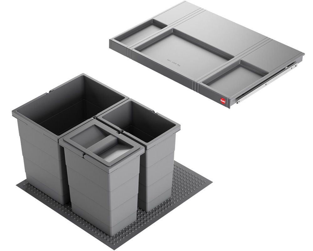 Das Hailo Всеgro System bietet Flexibilität für die speziell auf Ihre Bedürfnisse zugeschnittene Abfalltrennung in der Küche. Das System passt, ohne aufwenige Montage, in jede bauseits vorhandene 60cm breite Schublade. Das mobile Einbausystem ermöglicht neben dem individuellen Zuschnitt der Matte den Einsatz von verschiedenen Inneneimern. Der Planung sind hierbei keine Grenzen gesetzt. Diese Vielseitigkeit ermöglicht es, den verfügbaren Platz in Ihrem Küchenschrank optimal zu nutzen und gleichzeitig die Mülltrennung effizient und nachhaltig zu gestalten. Im aktuellen Angebot wird nachfolgend ein Mülltrennsystem mit 2x 8 + 18 Liter Inneneimern in einer Höhe von 295 mm zuzüglich Systemdeckel angeboten.