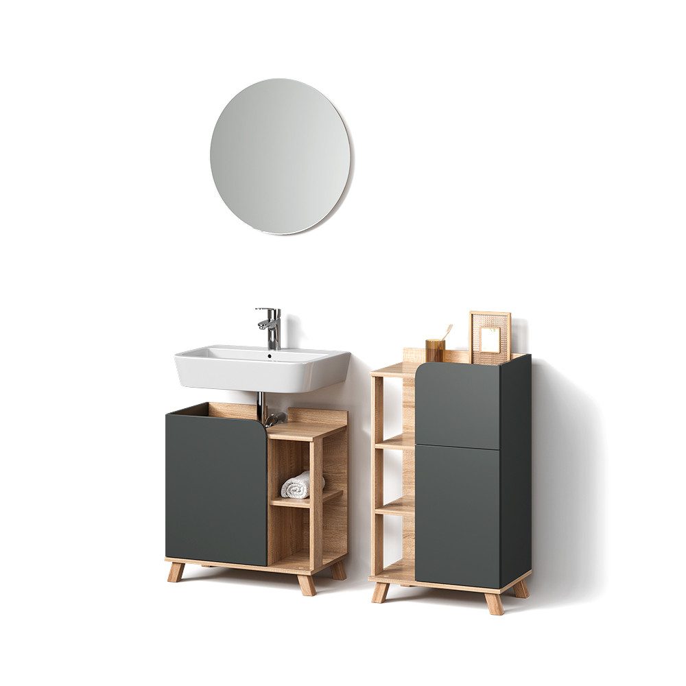 LIEFERUMFANG: Badspiegelschrank, Waschbeckenunterschrank, Midischrank, (Dekoration nicht im Lieferumfang enthalten), Montageanleitung, Montagematerial#25222