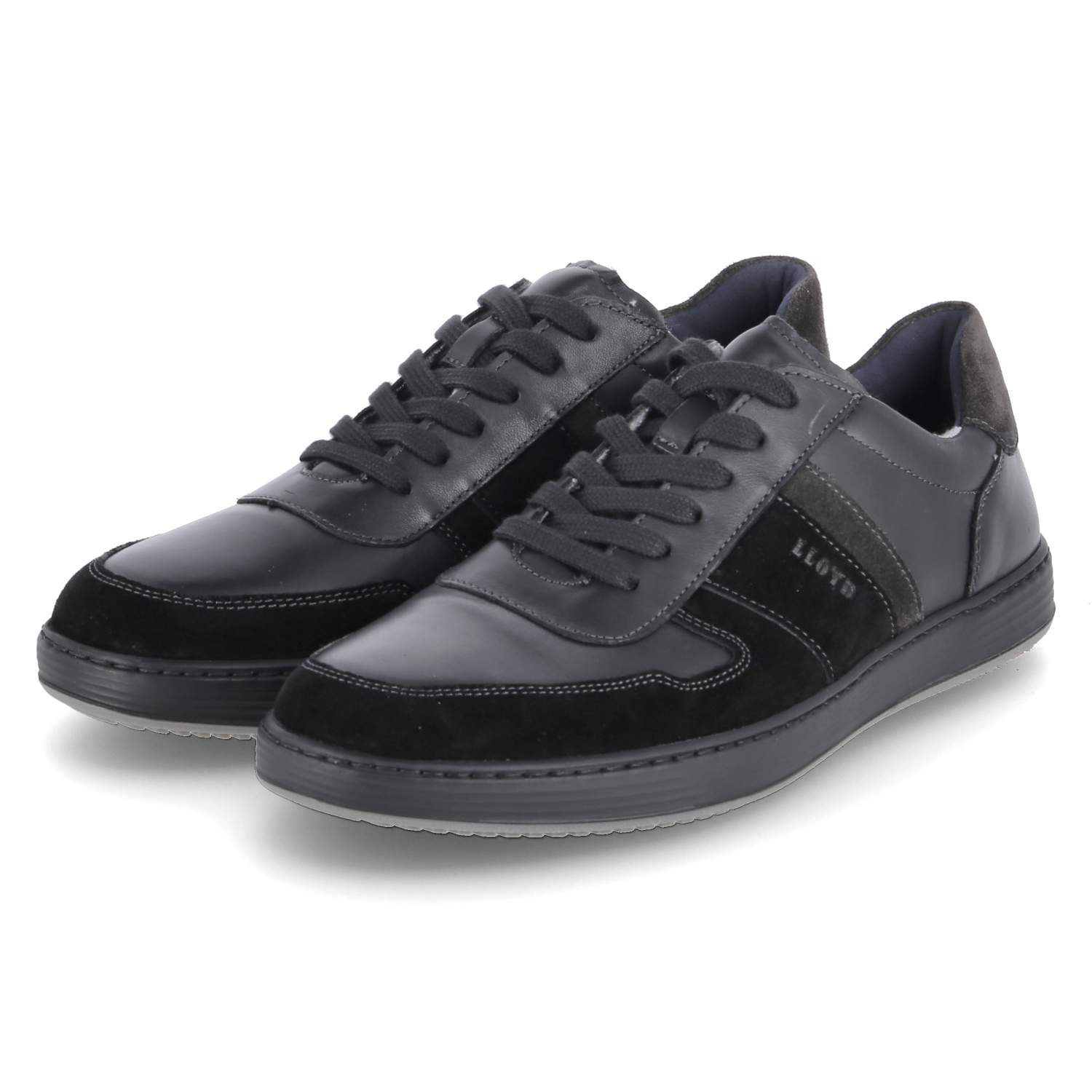 Die LLOYD Herren Low Sneaker BOSCO aus schwarzem Ledermix überzeugen mit ihrer schlichten Eleganz und sportlichem Komfort. Die klassische Schnürung sorgt für eine optimale Passform, während der leicht gepolsterte Einstiegsbereich sowie das gepolsterte Wechselfußbett ein angenehmes Tragegefühl garantieren. Verstärkter Zehen- und Fersenbereich bieten Stabilität und Langlebigkeit, während Ziernähte und dezente Streifen dem Design stilvolle Akzente verleihen. Die flexible Cupsohle sorgt für ein bequemes Laufgefühl und macht diesen Sneaker zu einem vielseitigen Begleiter, der sowohl zu Business-Casual-Outfits als auch zu legeren Freizeitlooks hervorragend passt.