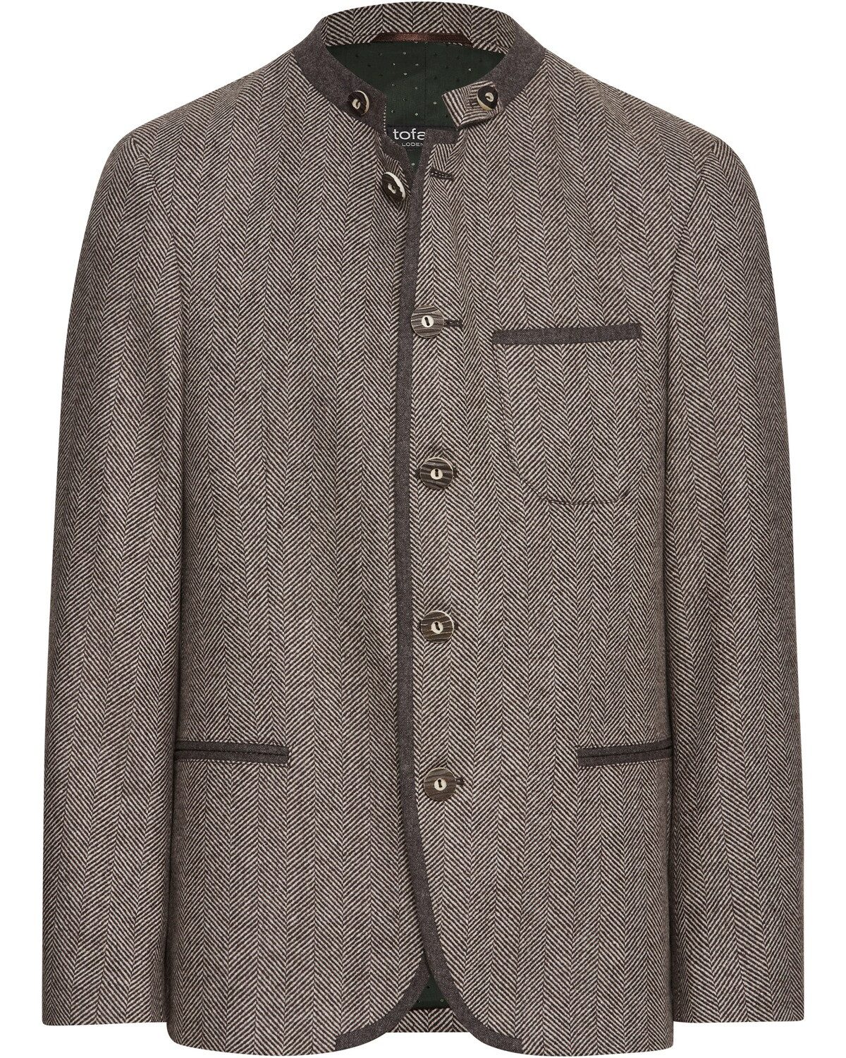 Der regulär geschnittene Herren Janker S.Gampern von Lodenfrey verkörpert den zeitlosen Charme des Landhausstils und verbindet traditionelle Handwerkskunst mit modernem Tragekomfort. Hergestellt aus einer hochwertigen Wollmischung, besticht der Janker durch ein elegantes Fischgrat-Muster, das ihm eine besondere Note verleiht. Der Stehkragen mit zurückgeknöpfter Lasche sorgt für einen klassischen Look. Praktische Details machen diesen Janker zu einem unverzichtbaren Begleiter für den Alltag und besondere Anlässe. Die aufgesetzte Brusttasche und zwei Paspeltaschen bieten ausreichend Platz für kleine Utensilien, während die Hornknöpfe in de vorderen Mitte und an den Ärmelenden das traditionelle Design harmonisch abrunden. Die zwei seitlichen Rückenschlitze gewährleisten zudem eine optimale Bewegungsfreiheit und tragen zum hohen Tragekomfort bei. Ob bei einem Ausflug in die Natur oder einem geselligen Beisammensein im Landhaus, der Herren Janker S. Gampern ist die ideale Wahl für stilbewusste Männer. Mit seinem rustikalen Flair und der gelungenen Kombination aus Funktionalität und Eleganz wird dieser Janker schnell zum Lieblingsstück in jeder Garderobe. Ein Kleidungsstück, das sowohl Tradition als auch Stil verkörpert und in keiner Sammlung fehlen sollte. Oberstoff: 45% Wolle, 25% Polyester, 15% Polyacryl, 10% Polyamid, 5% Sonstige Fasern; Futter: 50% Acetat, 50% Viskose. Dieser Artikel enthält nichttextile Teile tierischen Ursprungs.