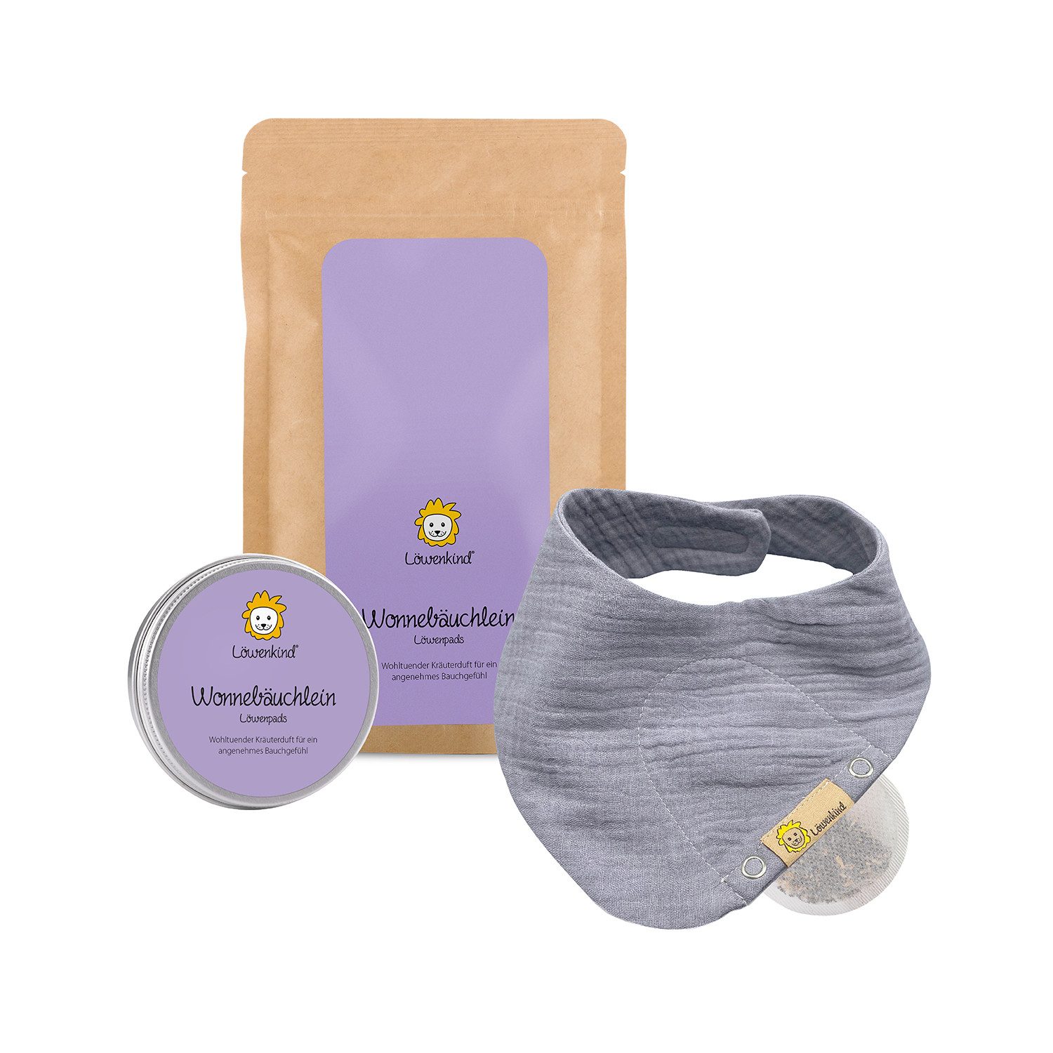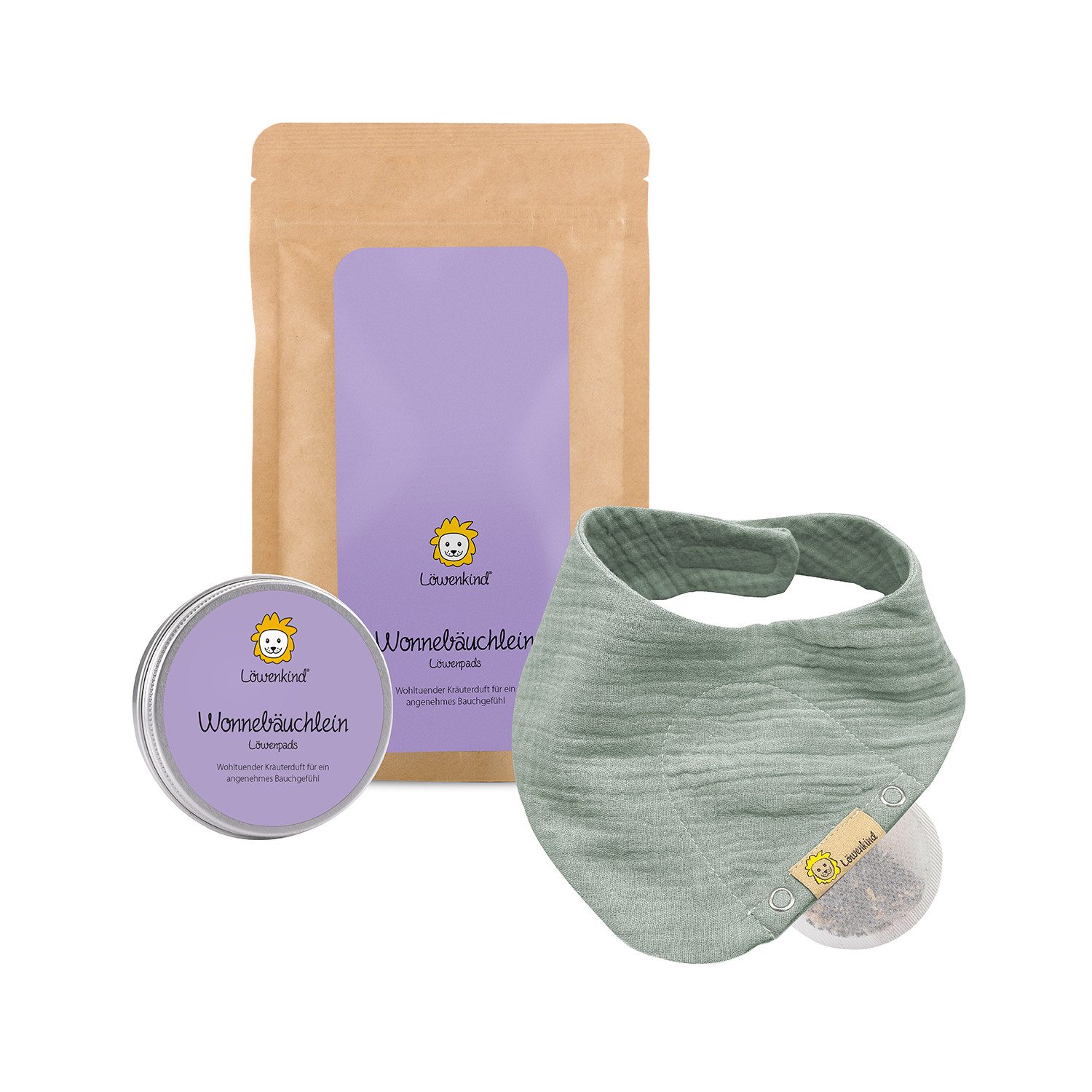 Das Wonnebäuchlein-Special von Löwenkind ist die ideale Wahl für ein angenehmes Bauchgefühl und eine sanfte Unterstützung im Alltag Deines Kindes. Dieses Set enthält ein kuschelig-weiches Musselin-Halstuch, das aus 100% Bio-Baumwolle gefertigt ist und sich angenehm an die empfindliche Kinderhaut anschmiegt. Das Musselin-Tuch in der Размер "Mini" eignet sich für Kinder von 0-4 Jahren. Das Herzstück des Sets sind die Wonnebäuchlein-Pads, die mit einer sorgfältig abgestimmten Kräutermischung aus Melissenblättern, Anis, Kümmel und Fenchel gefüllt sind. Diese natürlichen Inhaltsstoffe erzeugen einen angenehmen Duft, der einen entspannten Bauch fördert. Der beruhigende Duft der Kräutermischung kann das Wohlbefinden Deines Kindes unterstützen und eine angenehme Atmosphäre schaffen. Dabei ist die Anwendung sehr simpel und sicher. Das Kräuterpad wird in die dafür vorgesehene Pad-Tasche im Halstuch platziert. Das Halstuch wird am Kind angebracht und der Kräuterduft wird vom Kind aufgenommen. Ein Pad kann im Schnitt 5 Tage genutzt werden und eine Dose enthält 5 Kräuterpads. Somit versorgt Dich das Wonnebäuchlein-Set für mindestens 75 Tage.