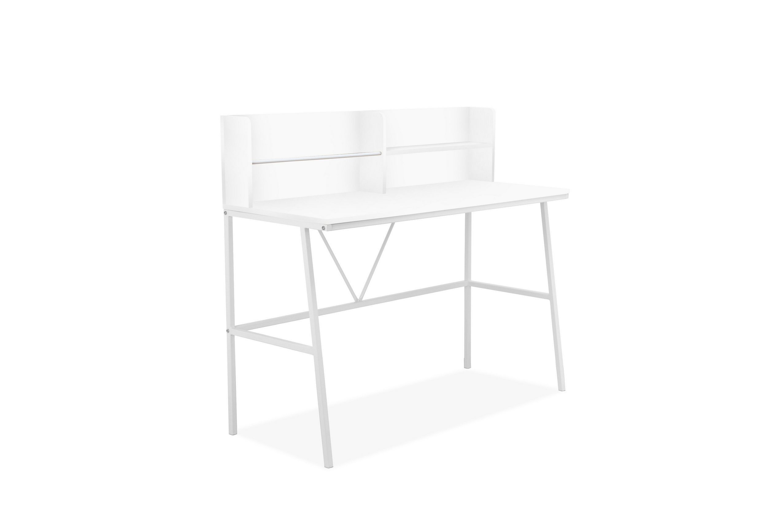 Mit seinem zusätzlichen Stauraum erleichtert Ihnen dieser Schreibtisch die Ordnung. Die matte Oberfläche der Tischplatte ist schlicht und zurückhaltend. Die maximale Belastbarkeit liegt bei einem Gewicht von 20 Kilogramm. Die Tischplatte besteht aus MDF und ist daher resistent gegen Feuchtigkeit. Risse und Verformungen sind daher eine Seltenheit. Wie der Tisch am besten gepflegt wird, können Sie dem beiliegenden Produkt- und Materialpass entnehmen. Der Schreibtisch ist die Basis für einen praktischen und gut organisierten Arbeitsplatz!
