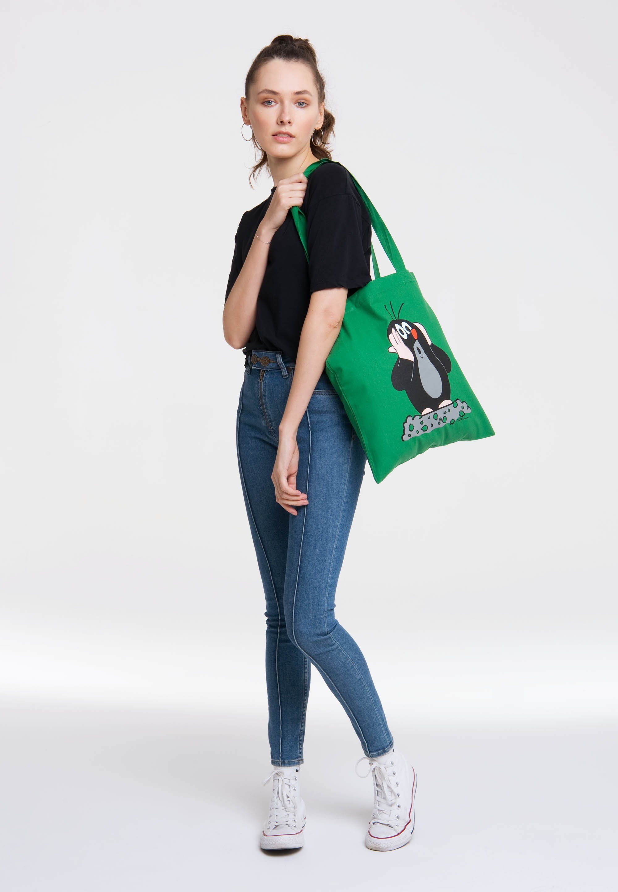 Diese Baumwolltasche versprüht gute Laune. Die Tasche ist in einem schönen, strahlenden Türkiston gehalten und wird von einem süßen Motiv geziert. Der kleine Maulwurf ist klassisch in Schwarz gehalten. Er steht auf einem kleinen Erdhügel und hält seine Hände so an sein Gesicht, als ob er gerade etwas angestellt hätte. Die süße Tasche hat eine Höhe von 42 cm und eine Breite von 38 cm, sodass sie sich hervorragend für Shopping-Touren oder als Einkaufstasche eignet. Dank langen Tragegriffen ist die Tasche auch auf der Schulter tragbar. Durch das lizenzierte Originaldesign bekommt das Motiv seinen authentischen und bekannten Ausdruck.