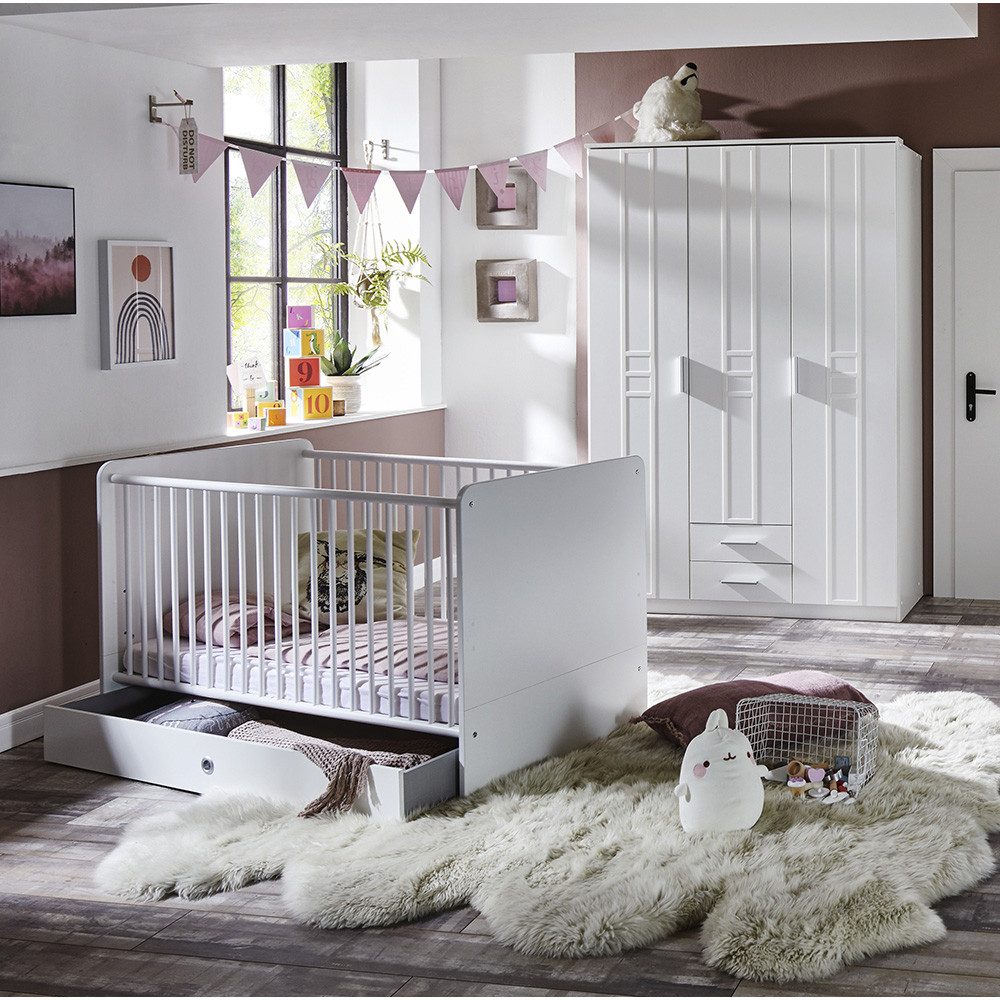 Eine bequeme Wickelkommode in ergonomischer Höhe erleichtert dir das Wickeln und Anziehen. Die Schränke mit ausreichend Stauraum für Kleidung, Windeln, Spielzeug und Pflegeprodukte hilft, Ordnung zu halten. Die herausnehmbaren Schlupfsprossen vom Babybett ermöglichen es deinem Kind selbstständig ins Bett zu gelangen und es zu verlassen, sobald es alt genug ist. Dies fördert die Unabhängigkeit und Selbstständigkeit deines Kindes.