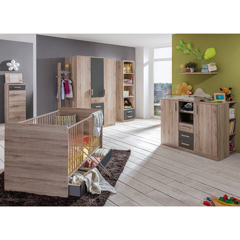 Dieses Babyzimmer-Set in stilvoller Eiche Nachbildung mit Graphit kombiniert modernes Design mit durchdachter Funktionalität.