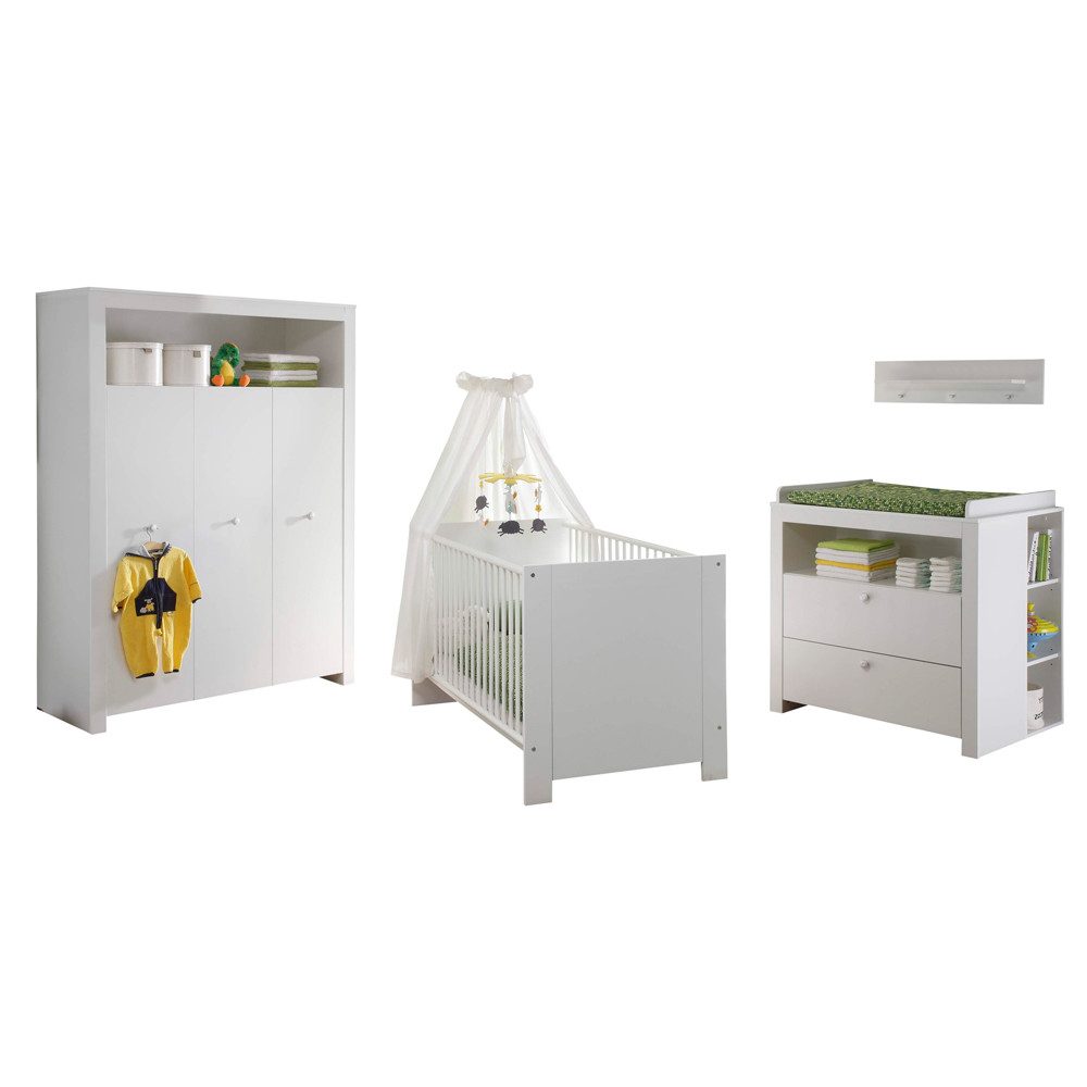 Das schlichte und moderne Design der Babyzimmer Serie OLBIA-19 passt sich jedem Einrichtungsstil perfekt an. Das weiße Design verleiht sorgt für einen hellen und freundlichen Look, zu dem sich alle Farben kombinieren lassen.
