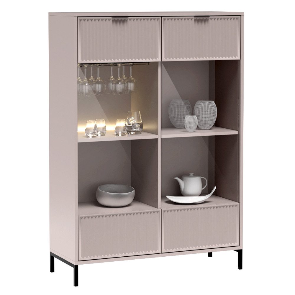 Tauche ein in die Welt der Eleganz und des Komforts! Unsere Wohnmöbel sind in Kaschmir beige oder Indigo blau erhältlich. Die Fronten in Rillenoptik, begleitet von goldfarbenen oder rosegoldfarbenen Griffen und schwarzen Metallfüßen, bieten dir die perfekte Gelegenheit, deine 4-Wände in einen Ort der stilvollen Erholung zu verwandeln.