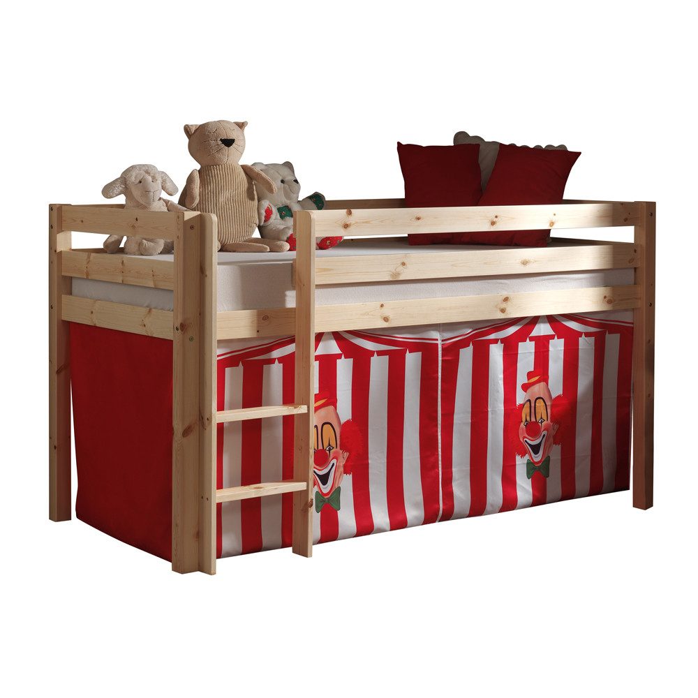 Kinderzimmer Spielbett PINOO-12 mit Textilset Zirkus in Kiefer massiv natur lackiert