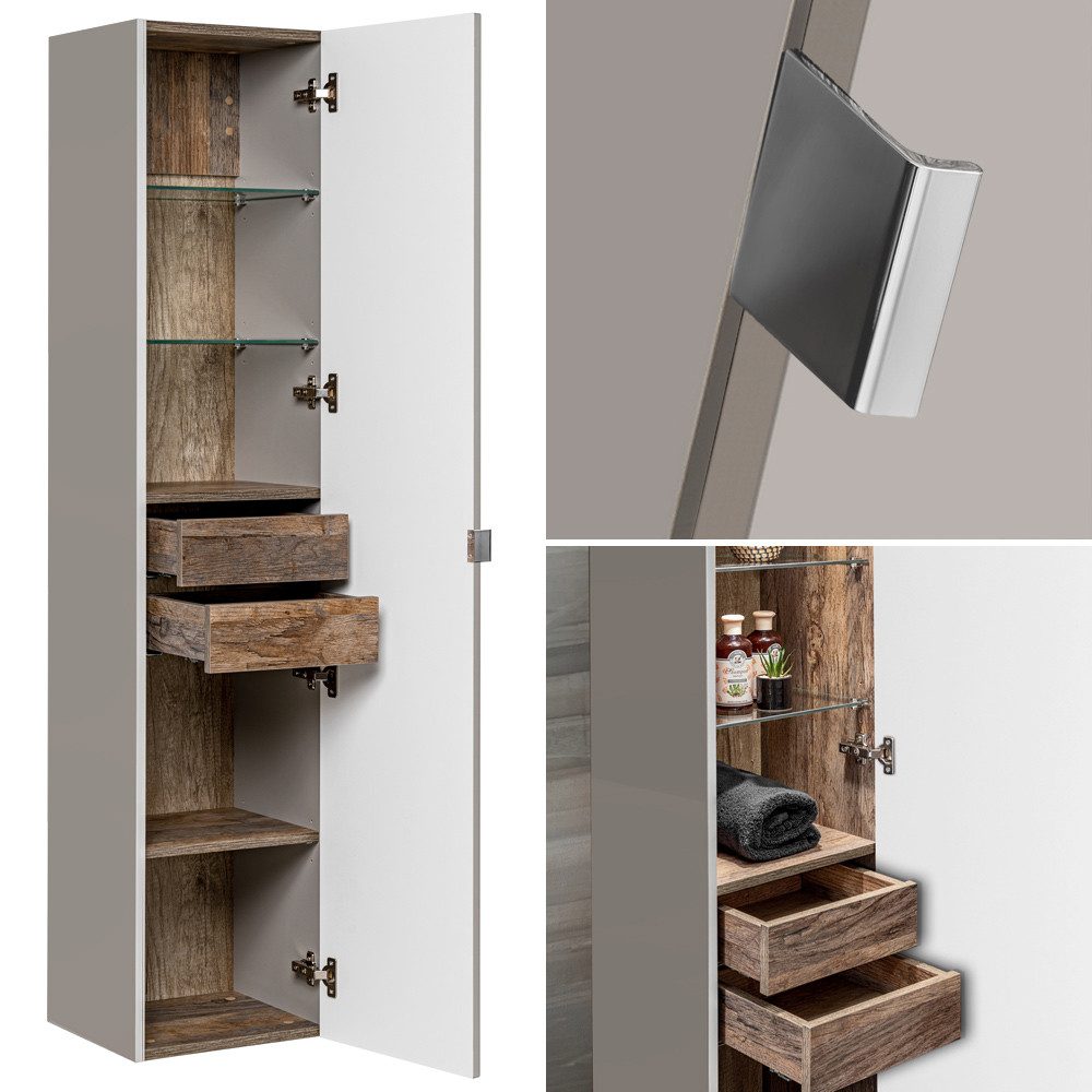 PUEBLA-56-TAUPE ist eine mit viele Liebe zum Detail entworfene Badmöbel Kollektion. Durch die Kombination der Farbe taupe (warmes Grau) mit dem Dekor Vintage Oak Eiche, wird das moderne Vintage-Design mit einer angenehmen natürlichen Harmonie und Gemütlichkeit vereint. Durch das minimalistische Design, fügt sich dieses Programm stimmig in jedes moderne Badambiente ein, verleiht zugleich aber einen besonders individuellen Look.