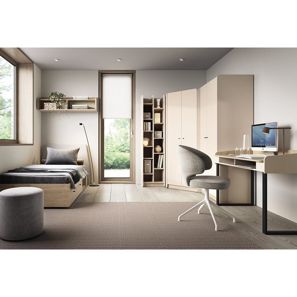 Dieses vielseitige Jugendzimmer-Set in sandbeige mit Eiche Nachbildung überzeugt mit cleverem Stauraum und modernem Design.