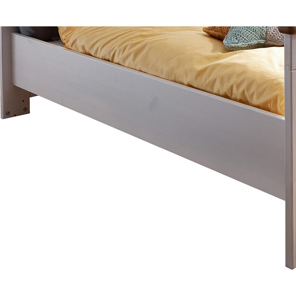 Unser Baby- & Kinderzimmer aus massivem Kiefernholz lädt zu unvergesslichen Abenteuern und süßen Träumen ein, während es gleichzeitig zeitlose Eleganz im charmanten Landhausstil in dein Zuhause bringt. In einem strahlenden Weiß mit Akzenten in Eiche Nb. gehalten, verleiht unsere Serie jedem Kinderzimmer eine warme und einladende Atmosphäre. Die Möbelstücke wurde mit Liebe zum Detail entworfen, um nicht nur die Schönheit, sondern auch Funktionalität zu bieten, damit du und dein Kind sich rundum wohlfühlen.