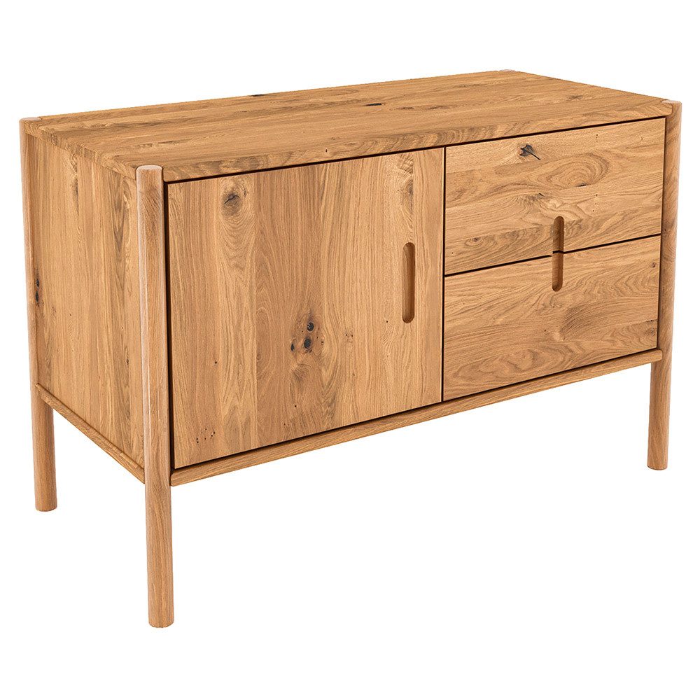 Diese elegante Kommode aus Massivholz Wildeiche mit geölter Oberfläche vereint modernes Design und praktischen Stauraum.