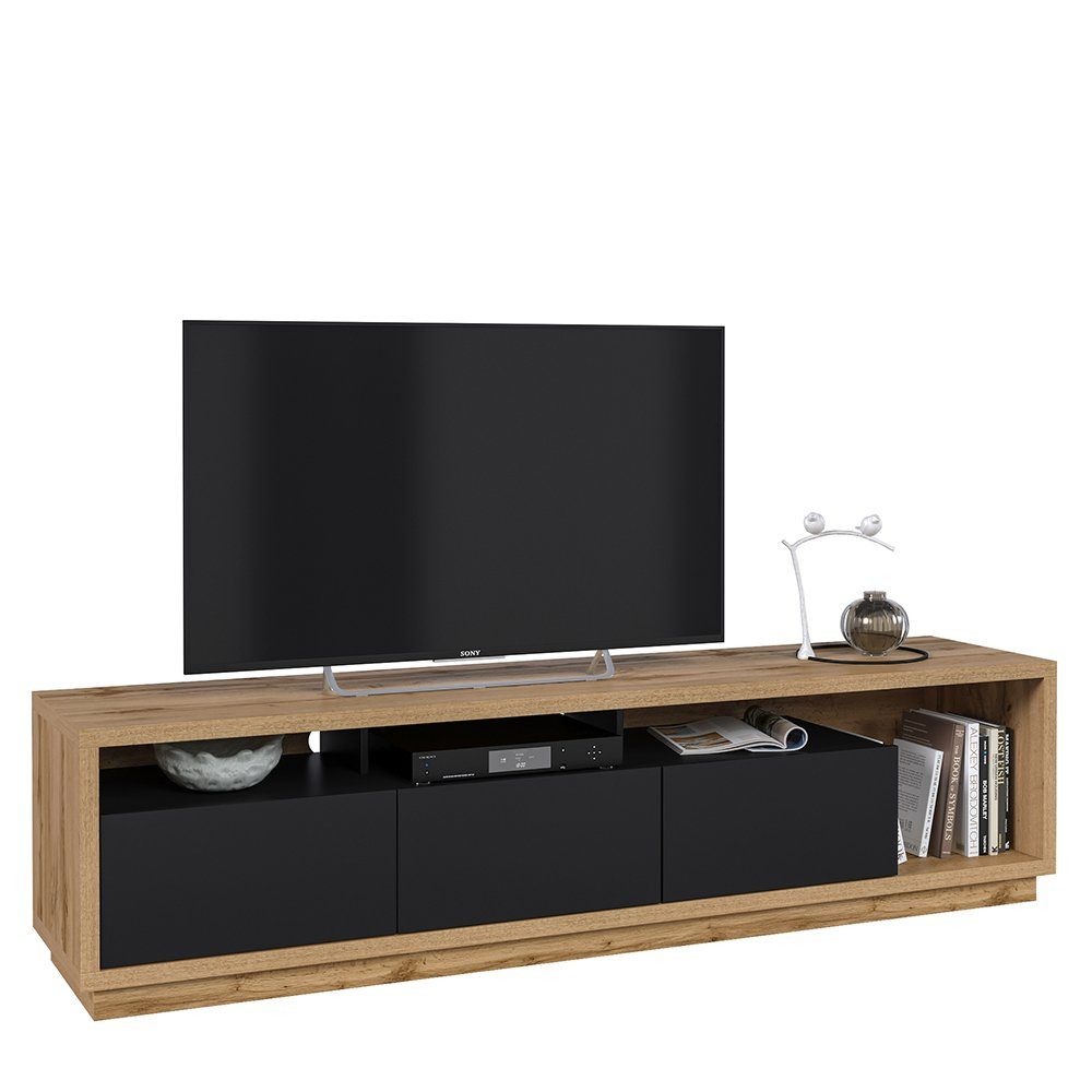 Die Kombination von schwarz matt und Wotan Eiche Nb. bietet dir einen modernen Look mit einem Hauch Natürlichkeit. Die Lamellen-Rückwand verleiht dem Ganzen nicht nur Charme, sondern schafft auch eine einladende Atmosphäre.