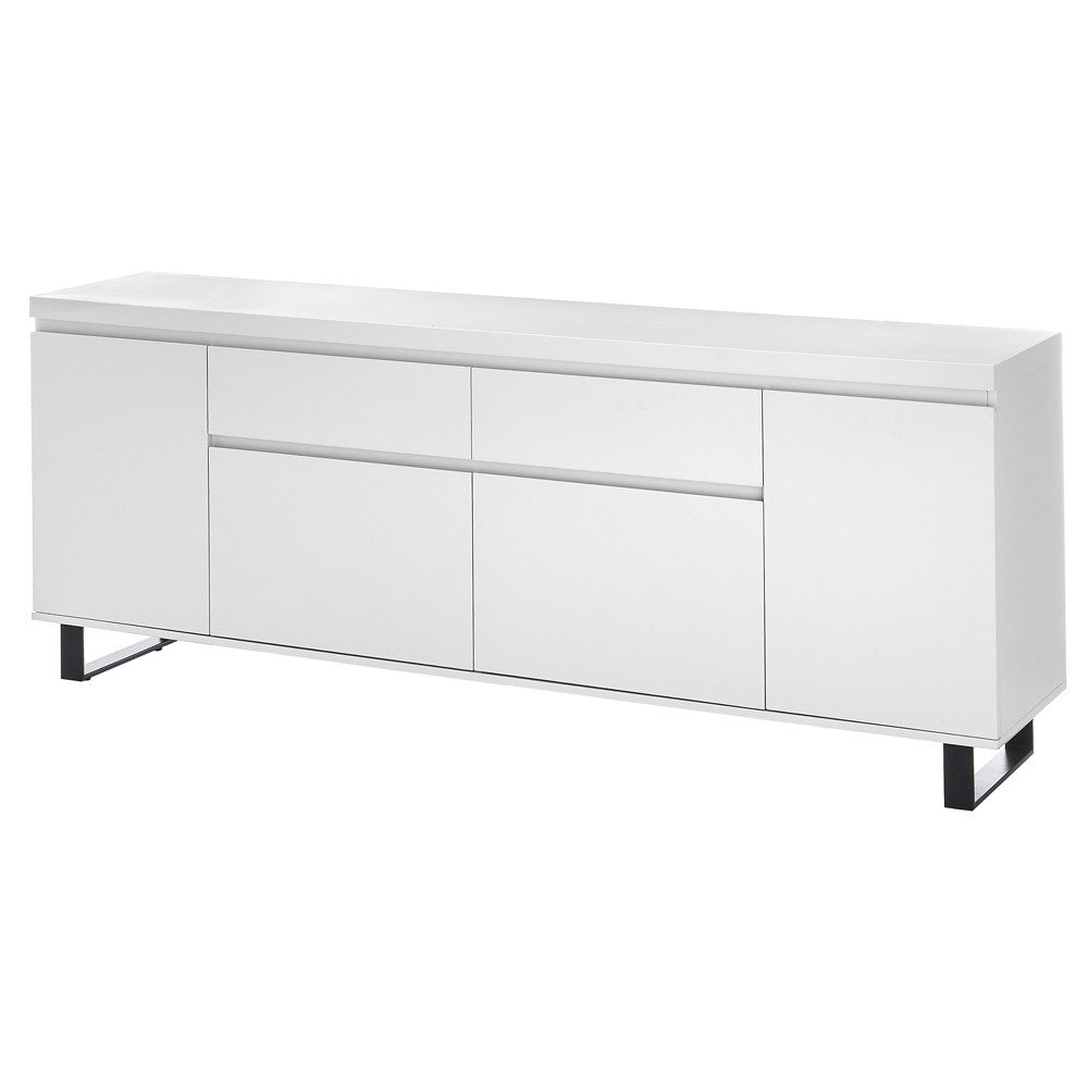 Minimalistisches Design trifft auf großzügigen Stauraum - dieses vielseitige Sideboard ist die perfekte Wahl für dein Zuhause. Das Design in mattweiß mit schwarzen Metallkufen verleiht deinem Wohnraum eine moderne und edle Note. Grifflose Fronten unterstreichen die klare Optik, während Softclose-Türen und Schubkästen mit Selbsteinzug für maximalen Komfort sorgen. Neben pflegeleichten Oberflächen bietet das Möbelstück hinter vier Türen, und in zwei Schubladen viel Stauraum.
