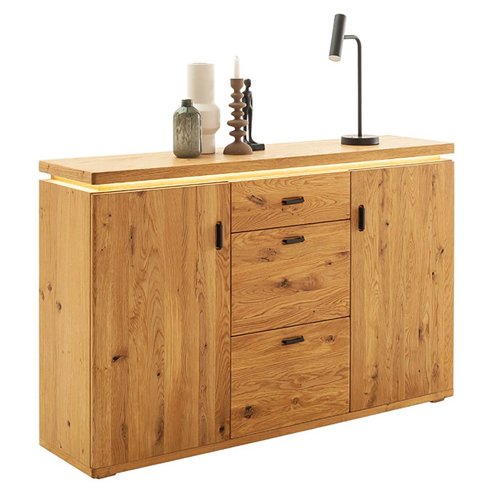 Die Fronten aus massiver Balkeneiche verleihen deinem Eingangsbereich eine warme, einladende Atmosphäre. Die durchgehende Lamelle in geölter Wildeiche sorgt für ein harmonisches und einheitliches Erscheinungsbild ohne sichtbare Unterbrechungen und verleiht den Möbelstücken eine edle und wertige Optik. Der Korpus aus Spanplatte, veredelt mit einem Echtholzfurnier in ebenfalls geölter Wildeiche, rundet das Bild ab und sorgt für einen durchgängigen, hochwertigen Gesamteindruck.