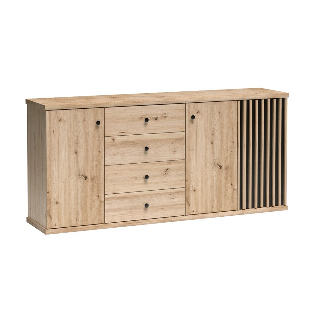 Entdecke die moderne Wohnzimmermöbelserie in Artisan Eiche Nb. mit stilvollen Akzenten in Schwarz und eleganten Lamellen. Die Möbel überzeugen durch ABS Kantenschutz und Türen mit Softclose-Funktion. Dank ihrer vielseitigen Kombinierbarkeit passt diese Serie perfekt in jedes Wohnzimmer.