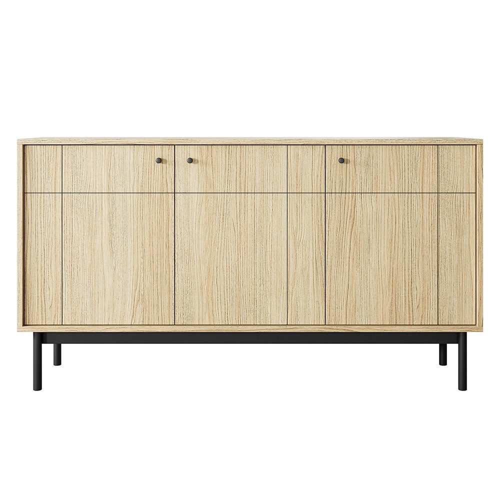 Die gefrästen Fronten verleihen den Möbelstücken einen einzigartigen Charakter und setzen ein stilvolles Statement in deinem Zuhause. Schwarze Metallknäufe und schwarz lackierte Holzfüße unterstreichen das minimalistische Design und sorgen für einen harmonischen Kontrast. Dank der Softclose-Funktion schließen die Türen und Schubladen besonders leise und sanft – für mehr Komfort im Alltag.