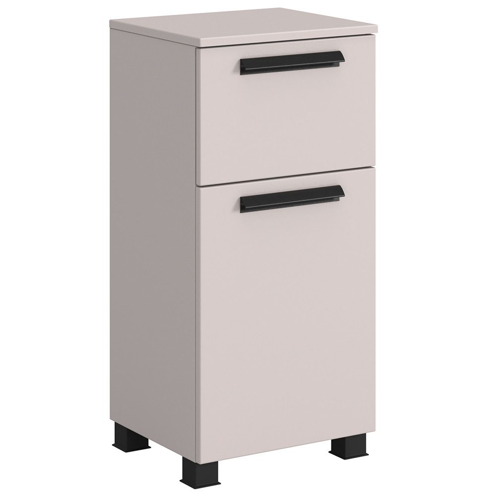 Kompakt, stilvoll und praktisch: Der Unterschrank schafft cleveren Stauraum auf kleinem Raum. Ein vielseitiges Stauraumwunder, das sich perfekt in moderne Badkonzepte einfügt. Eine leichtgängige Schublade und ein geräumiges Fach hinter der Tür bieten Platz für Pflegeprodukte, Handtücher oder Reinigungsmittel. Die Möbel der Serie sind in Rot, Kaschmir oder Schwarz erhältlich – modern, clean, zeitlos schön.