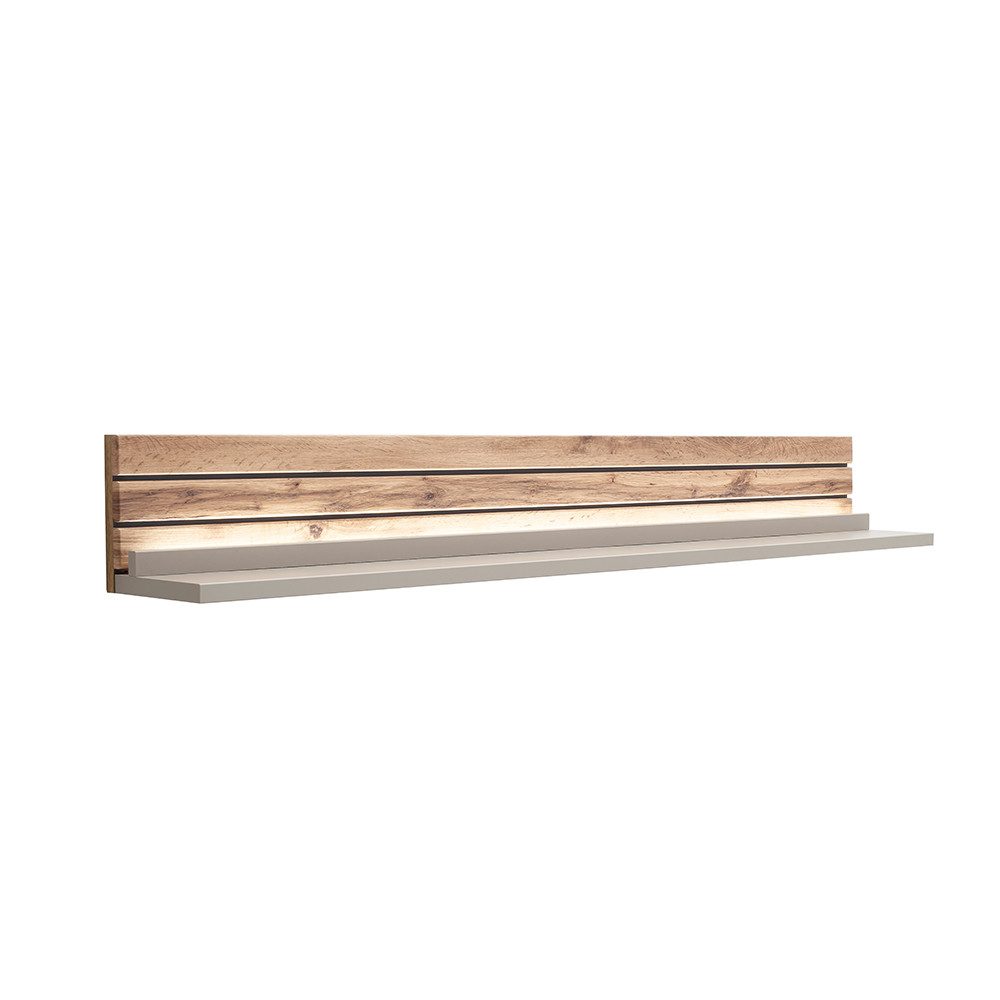 Dieses Wandregal kombiniert modernes Design mit praktischer Nutzung und schafft eine stilvolle Ablagefläche für Bücher, Deko oder Pflanzen. Die harmonische Farbgebung aus sanftem Basaltgrau und warmem Wotan Eiche-Dekor sorgt für ein wohnliches Ambiente. Die integrierte LED-Leiste setzt dekorative Objekte perfekt in Szene, während die robuste melaminbeschichtete Oberfläche für Langlebigkeit und einfache Pflege steht. Dank verstellbarer Hängebeschläge lässt sich das Regal flexibel an der Wand anbringen und bietet eine stabile Präsentationsfläche mit bis zu 3 kg Traglast.