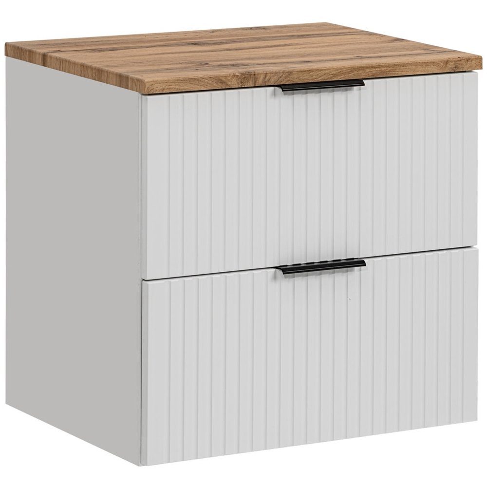 Das optische Highlight der Badezimmermöbel sind die aufwändig gearbeiteten Fronten in Rillenoptik, die das elegante Erscheinungsbild auf besondere Art und Weise hervorheben.