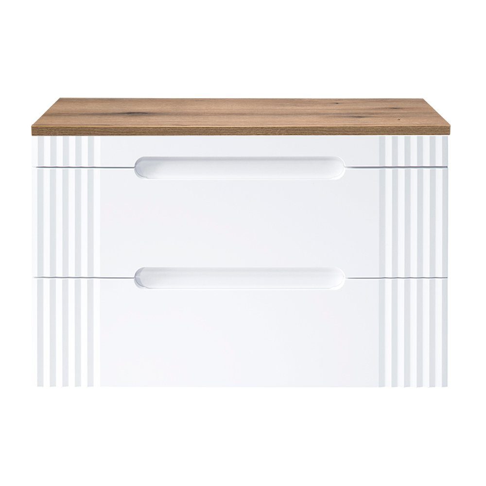 Das moderne Design des Waschtisch-Unterschranks wird durch die seitlichen Rillen perfekt abgerundet. Dieses Detail und die Kombination mit der Waschtischplatte verleihen deinem Raum eine besondere Note und macht den Unterschrank zu einem echten Hingucker.