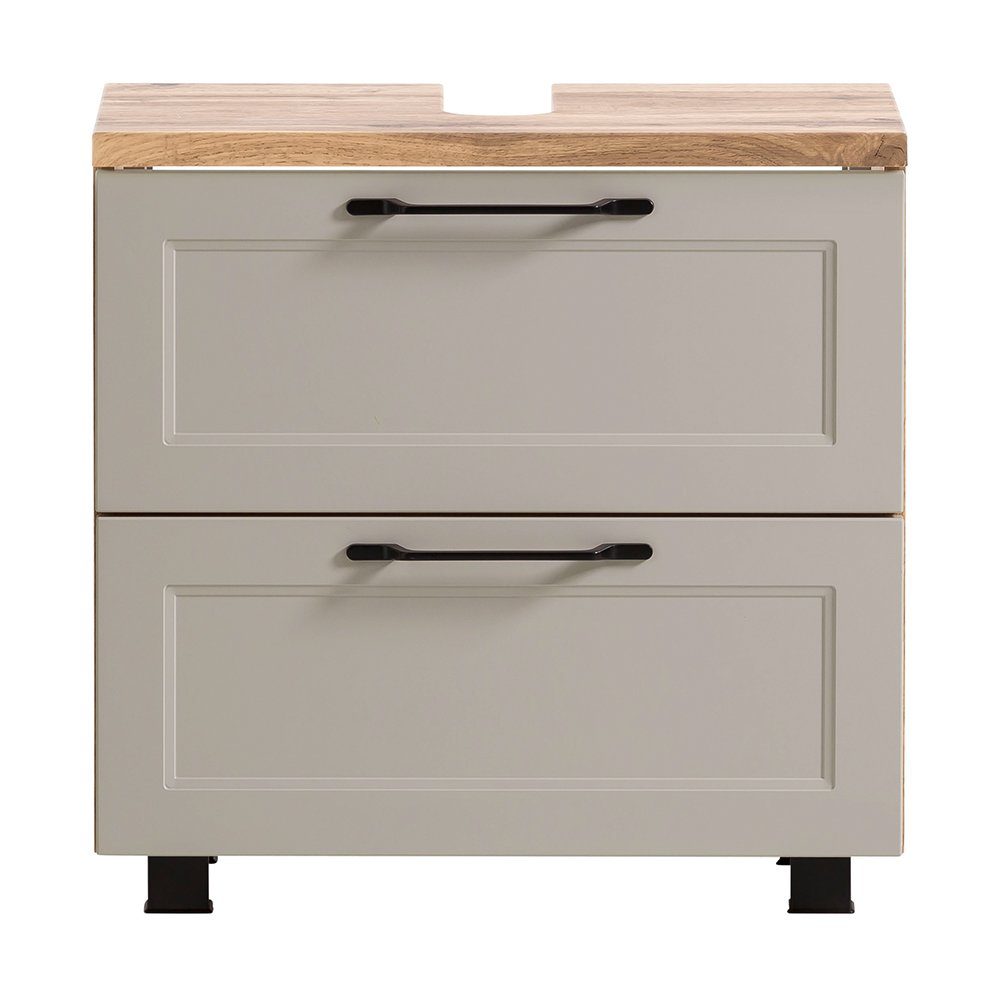 Qualitätsmöbel Made in Germany - Die Badmöbel-Serie MARLING-03 ist durch ihr Landhausstildesign mit drei Farbkombinationen in Weiß, Grau und Kaschmir mit Wotan Eiche Nb. ein moderner und zeitloser Hingucker.
