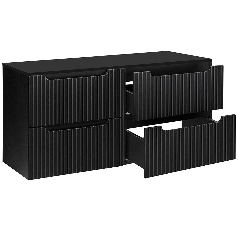 Diese Serie besticht durch ihre klaren, geradlinigen Formen und zeitlose Eleganz, hervorgehoben durch vertikale Rillen an den Fronten, die jedem Stück Tiefe und Charakter verleihen.