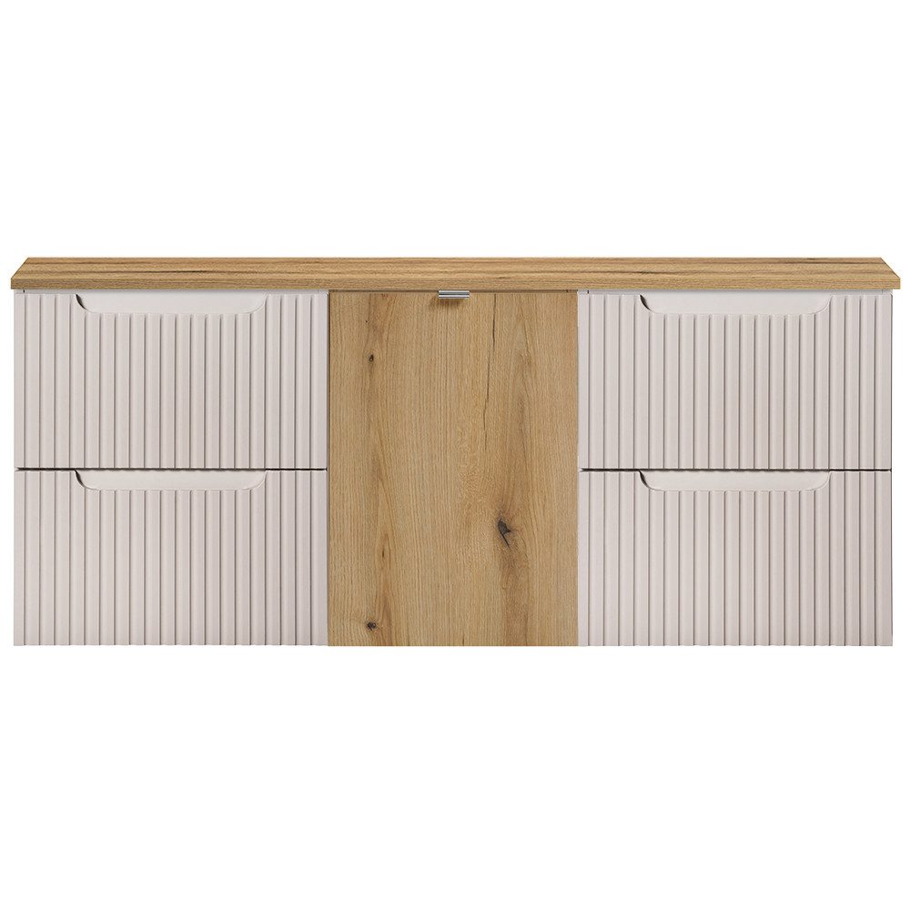 Diese Serie besticht durch ihre klaren, geradlinigen Formen und zeitlose Eleganz, hervorgehoben durch vertikale Rillen an den Fronten, die jedem Stück Tiefe und Charakter verleihen.