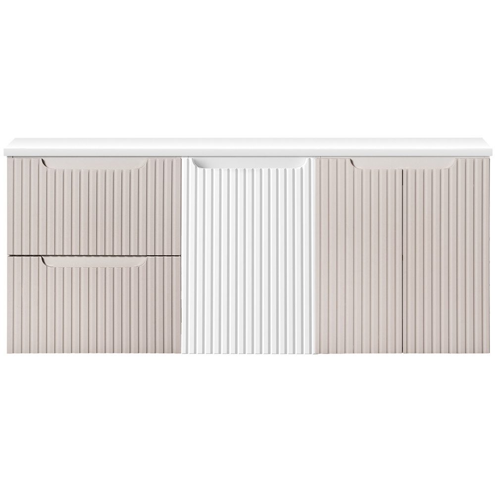 Diese Serie besticht durch ihre klaren, geradlinigen Formen und zeitlose Eleganz, hervorgehoben durch vertikale Rillen an den Fronten, die jedem Stück Tiefe und Charakter verleihen.