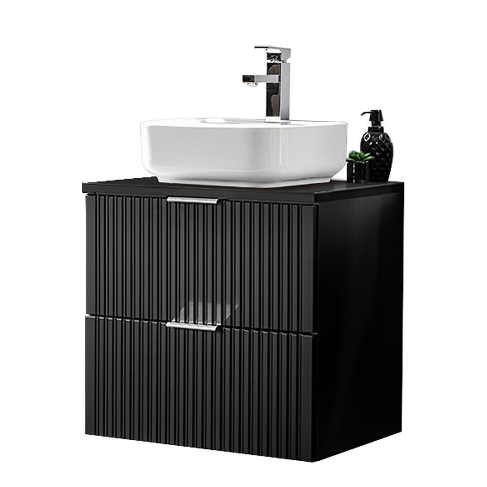 Unsere Badmöbel-Serie ADELAIDE-56-BLACK vereint modernes Design mit Eleganz. Matt schwarze Möbel, ergänzt mit goldfarbenen, chromfarbenen oder schwarzen Griffen macht aus jedem Badezimmer einen Wohlfühlort.