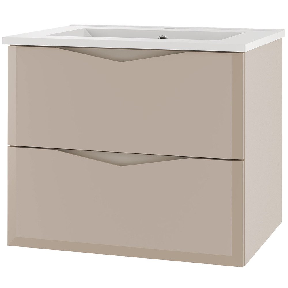 Der 61 cm breite Waschtisch verbindet stilvolles Design mit durchdachter Funktionalität. Die warme Kaschmirfarbe bringt Eleganz in dein Badezimmer, während die grifflosen Fronten und die leicht angeschrägten Kanten im Facettenschliff-Design für ein modernes und hochwertiges Erscheinungsbild sorgen. Die Softclose-Schubladen bieten großzügigen Stauraum, und das robuste Keramikwaschbecken überzeugt mit seiner pflegeleichten Oberfläche. Ein perfekter Waschtisch für alle, die eine praktische und zugleich ästhetische Lösung für ihr Badezimmer suchen.