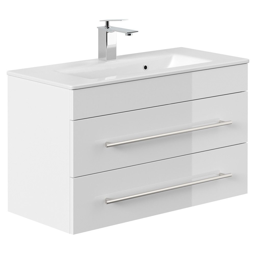 Dieser stilvolle Waschtisch in Hochglanz Weiß bringt modernes Design selbst in schmalere Bäder. Mit nur 36 cm Tiefe eignet er sich ideal für kompakte Räume, ohne auf Eleganz zu verzichten. Die zwei großzügigen Schubladen mit Softclose-Funktion lassen sich dank der edlen Stangengriffe besonders komfortabel öffnen. Die lackierte Oberfläche sorgt für eine hochwertige Optik, die deinem Badezimmer das gewisse Etwas verleiht. Perfekt für alle, die minimalistisches Design mit cleverer Raumnutzung verbinden möchten.
