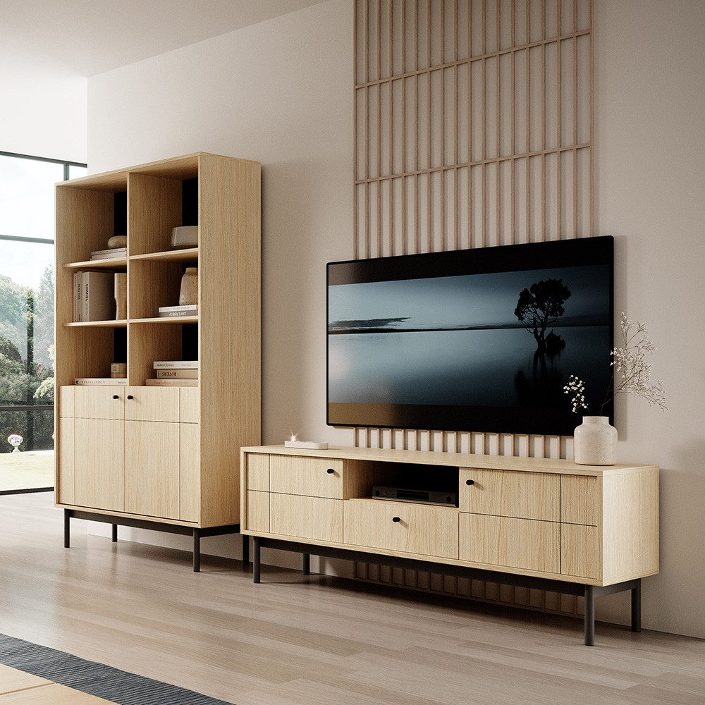 Bringe modernen Stil und praktische Funktionalität in dein Wohnzimmer mit unserer eleganten Möbelserie, die in zwei ansprechenden Вариантыn erhältlich ist: sanftes Kaschmir oder natürliche Eiche Nb. Linea.