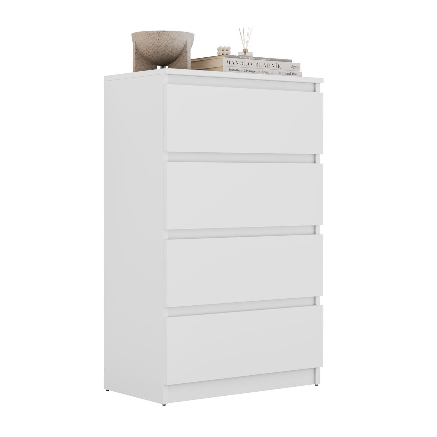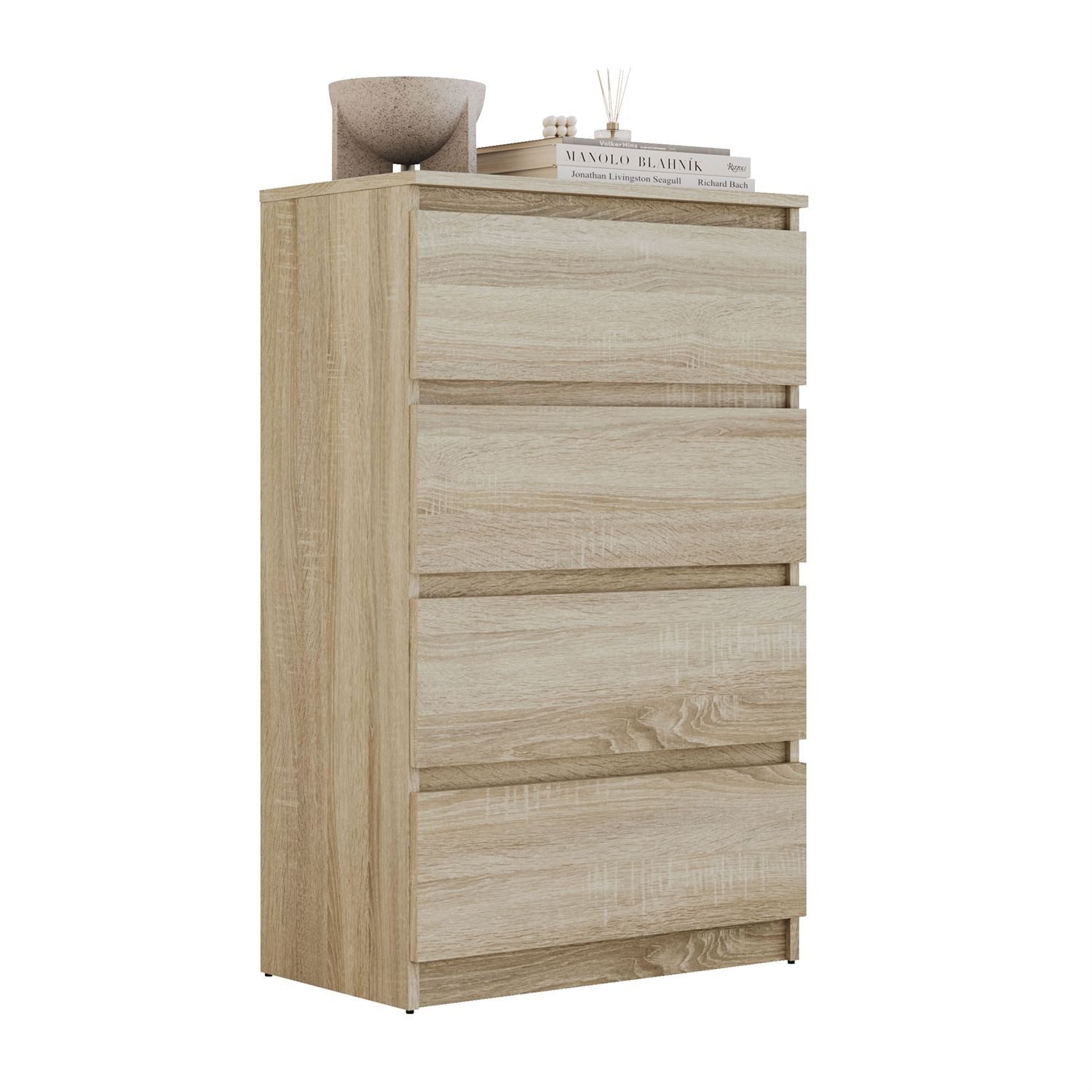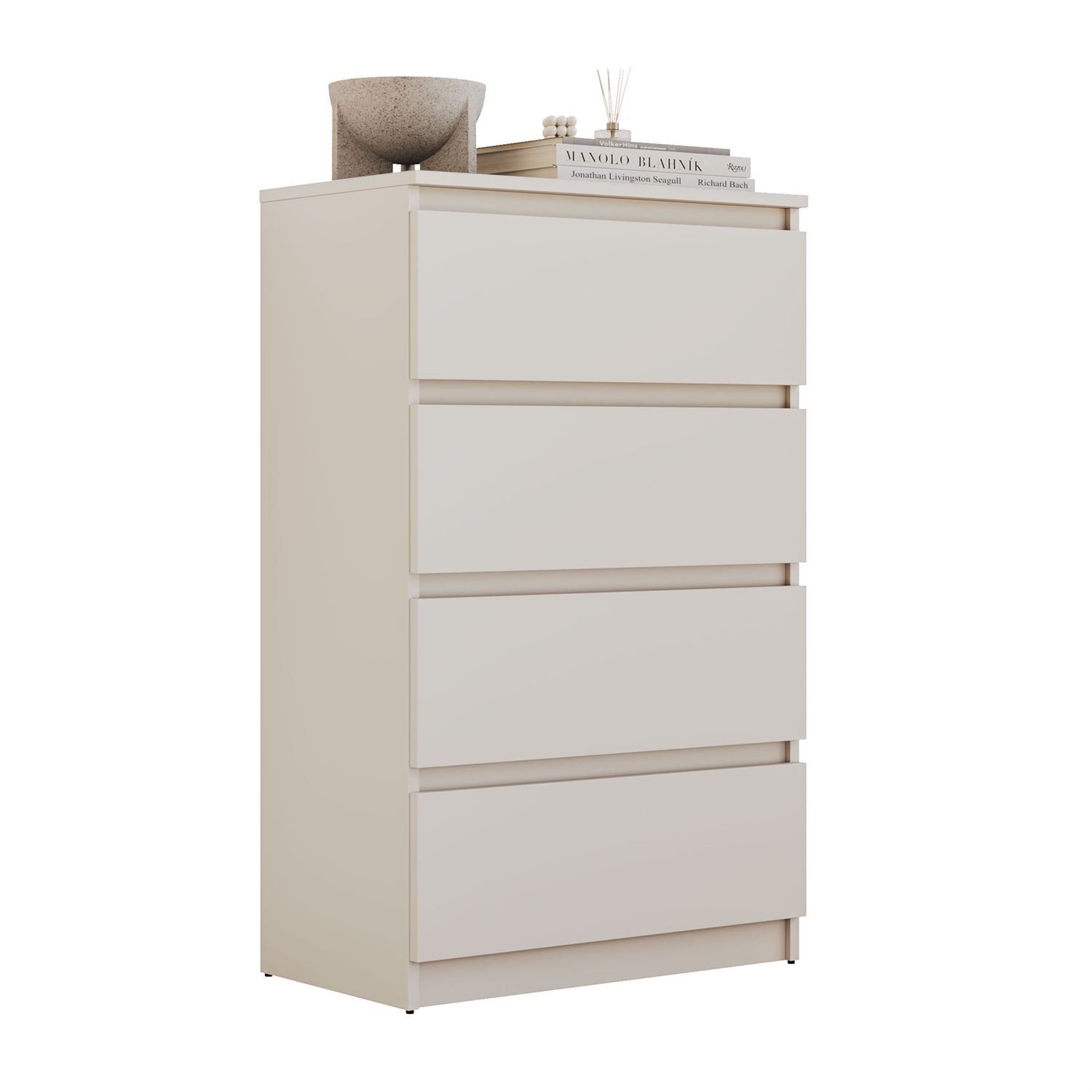Vier geräumige Schubladen bieten viel Platz zur Aufbewahrung. Sie ist die praktische Wahl für alle, die Ordnung und Komfort schätzen und gleichzeitig einen Hauch moderner Eleganz in ihr Zuhause bringen möchten. So erleichtert das Möbelstück nicht nur den Alltag, sondern verleiht dem Raum auch Harmonie und Ästhetik.