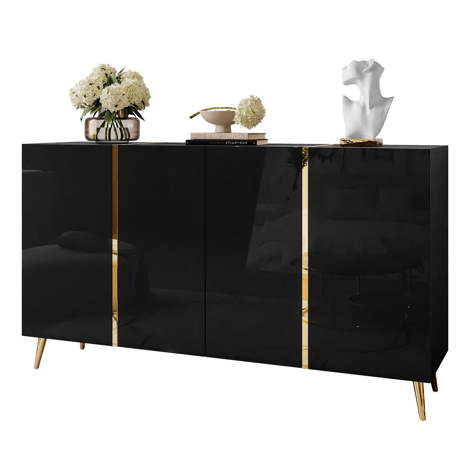 Die Kommode ist in zwei eleganten Ausführungen erhältlich: in glänzendem Weiß, das den Raum aufhellt und eine subtile Eleganz verleiht – ideal für helle und glamouröse Interieurs – sowie in tiefem, glänzendem Schwarz, das dem Raum einen luxuriösen Charakter verleiht. Goldene Akzente in Form von dekorativen Kanten und Griffen vervollständigen das Design und verleihen der Kommode Prestige und zeitlose Eleganz. Darüber hinaus steht die Kommode auf hohen, goldfarben verchromten Beinen, die ihr modernes Design unterstreichen und dem Interieur eine elegante Note verleihen.