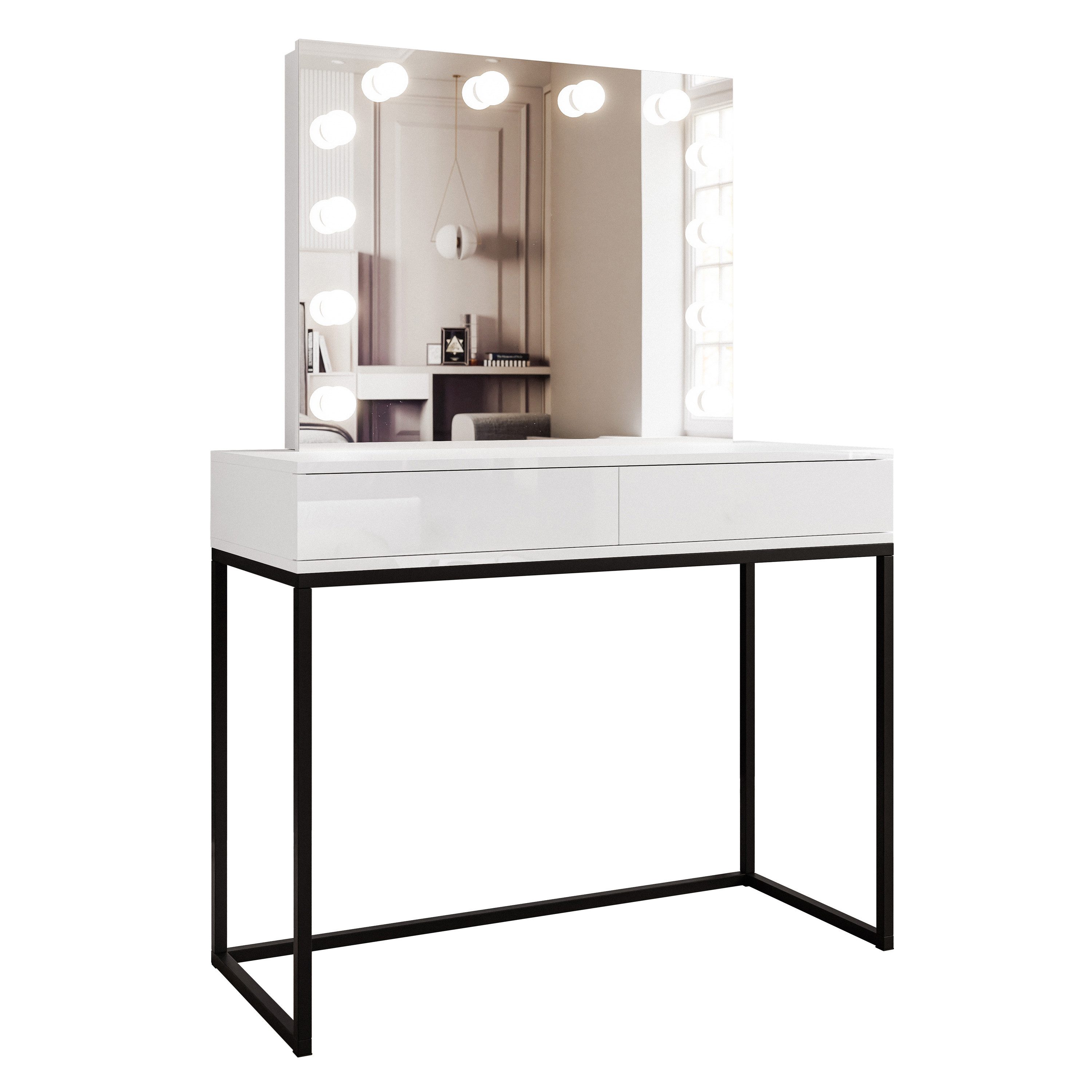 Der äußerst stilvolle Schminktisch BLANCO auf einem Metallgestell ist eine Kombination aus einzigartigem Design und robuster Konstruktion, die modernen Charme und Funktionalität in Ihr Interieur bringen wird.