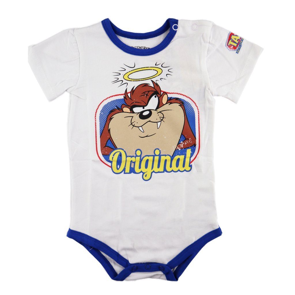 Begrüße die Abenteuer des Tages mit unserem niedlichen Baby Body, der das unverkennbare Looney Tunes TAZ-Motiv zur Schau stellt! Dieser bezaubernde Baby Body ist das perfekte Outfit für alle kleinen Fans des ungestümen tasmanischen Teufels aus der Kult-Zeichentrickserie. Der kurzärmelige Body besteht aus einer hochwertigen Mischung aus 95% Baumwolle und 5% Elastan, wodurch er besonders weich und angenehm auf der zarten Babyhaut ist. Die Elastizität sorgt außerdem für eine perfekte Passform und Bewegungsfreiheit. Das Highlight des Bodys ist natürlich das coole TAZ-Motiv, das mit seiner Wildheit und seinem Charme alle umstehenden zum Lächeln bringen wird. Neben dem stilvollen Design ist der Body auch äußerst praktisch. Er verfügt über Druckknöpfe im Schritt, die das Wickeln leicht und unkompliziert gestalten.