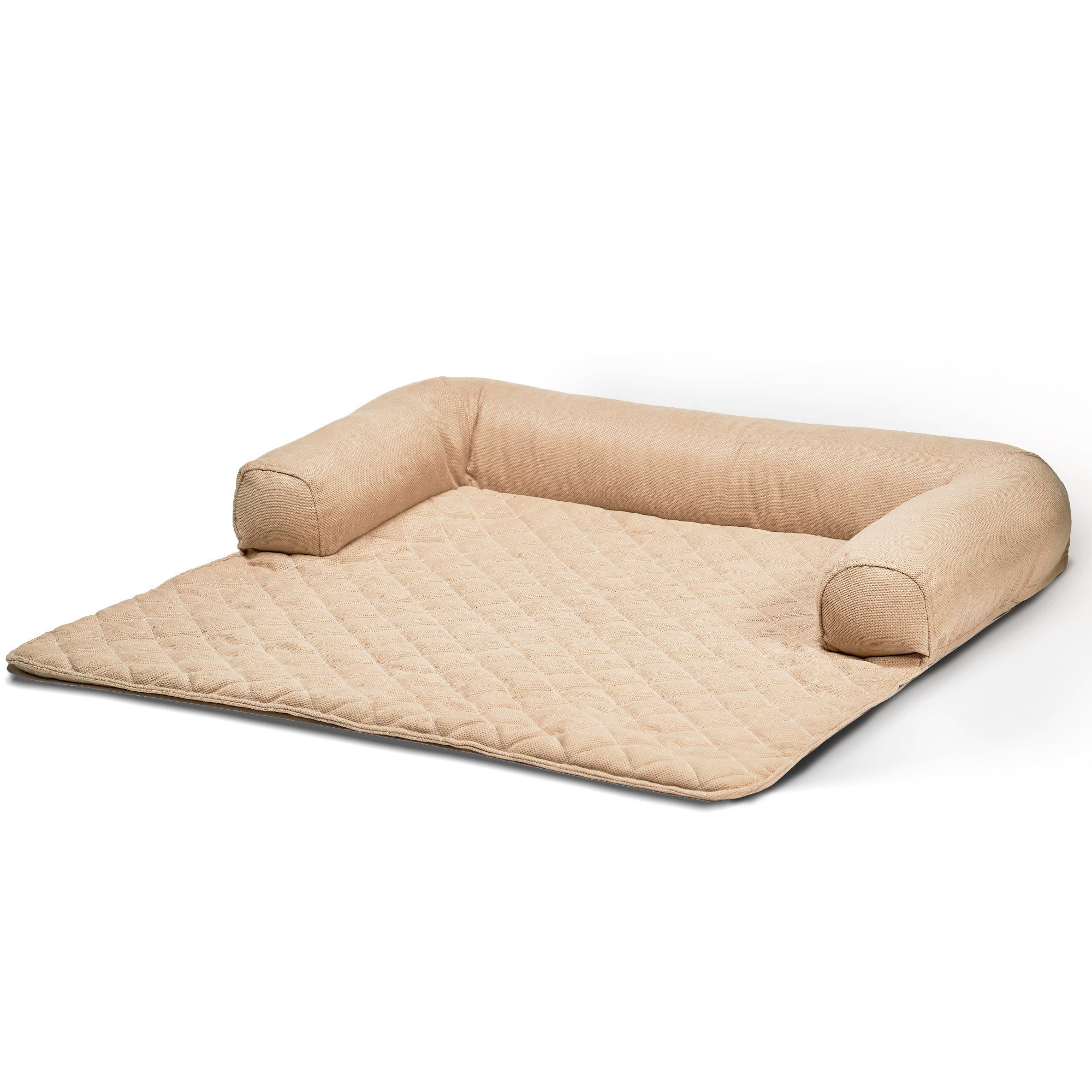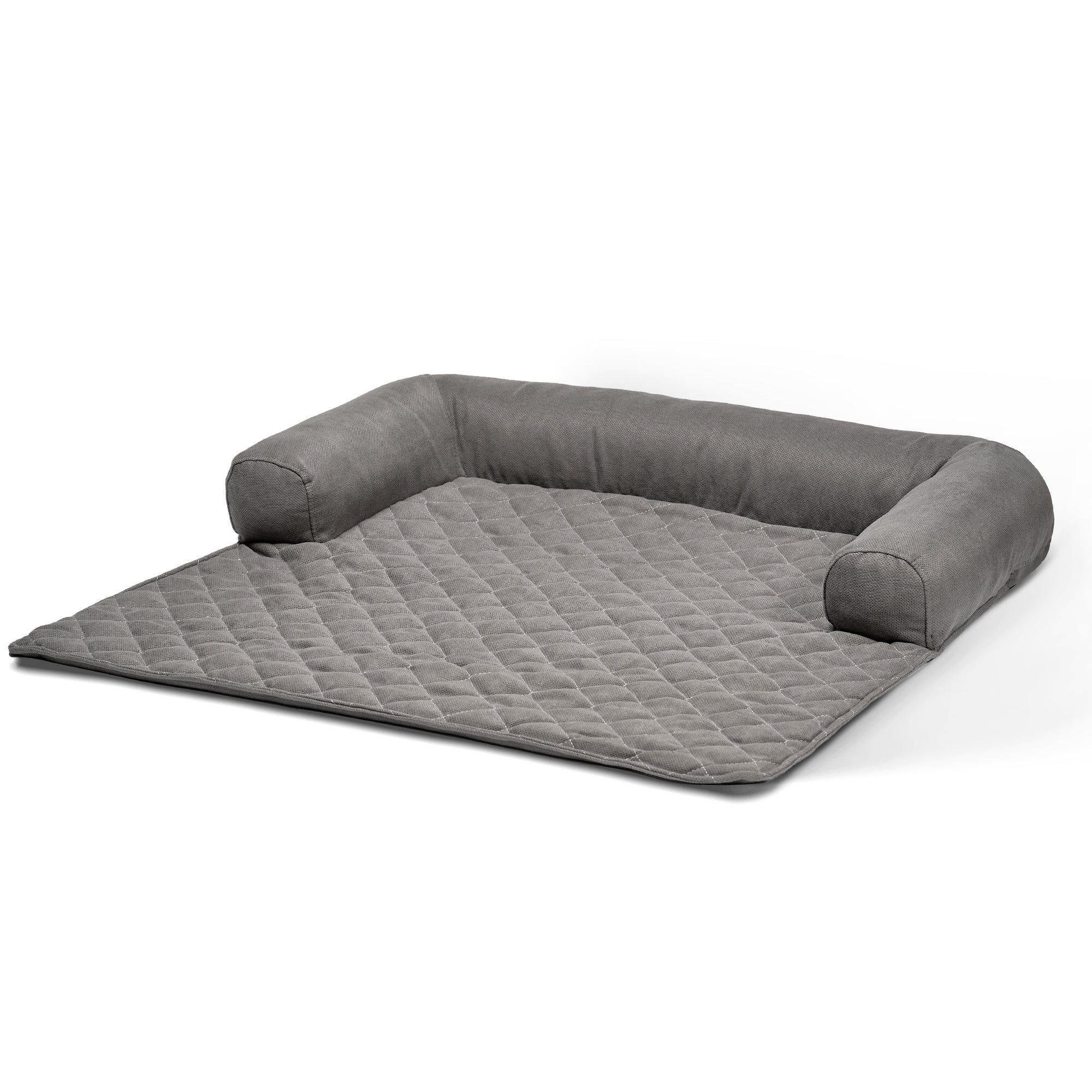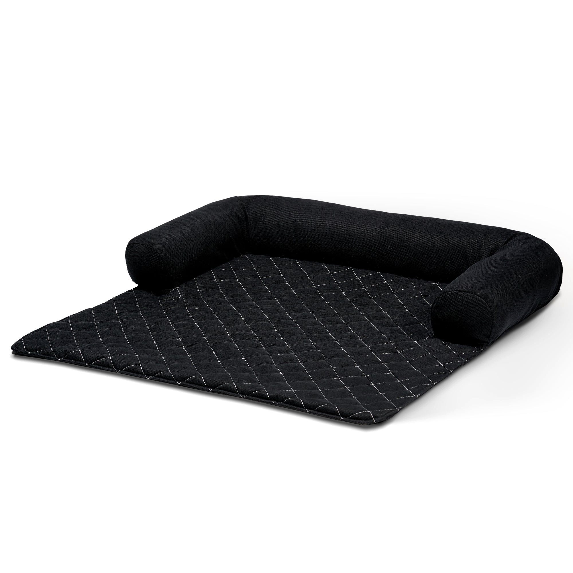 Diese hochwertige Hundedecke vereint drei Funktionen in einem: Schutz, Komfort und Design. Ob auf dem Sofa, im Auto oder auf dem Boden, mit der Lous Hundematte ist Ihr Hund überall bestens gebettet. Die formstabilen Seitenränder sind mit recyceltem Material gefüllt und dienen Ihrem Liebling als ergonomische Kopfstütze oder als kuschelige Wand zum Anschmiegen. Gleichzeitig bewahren sie Ihre Möbel effektiv vor Schmutz, Haaren und Kratzern.