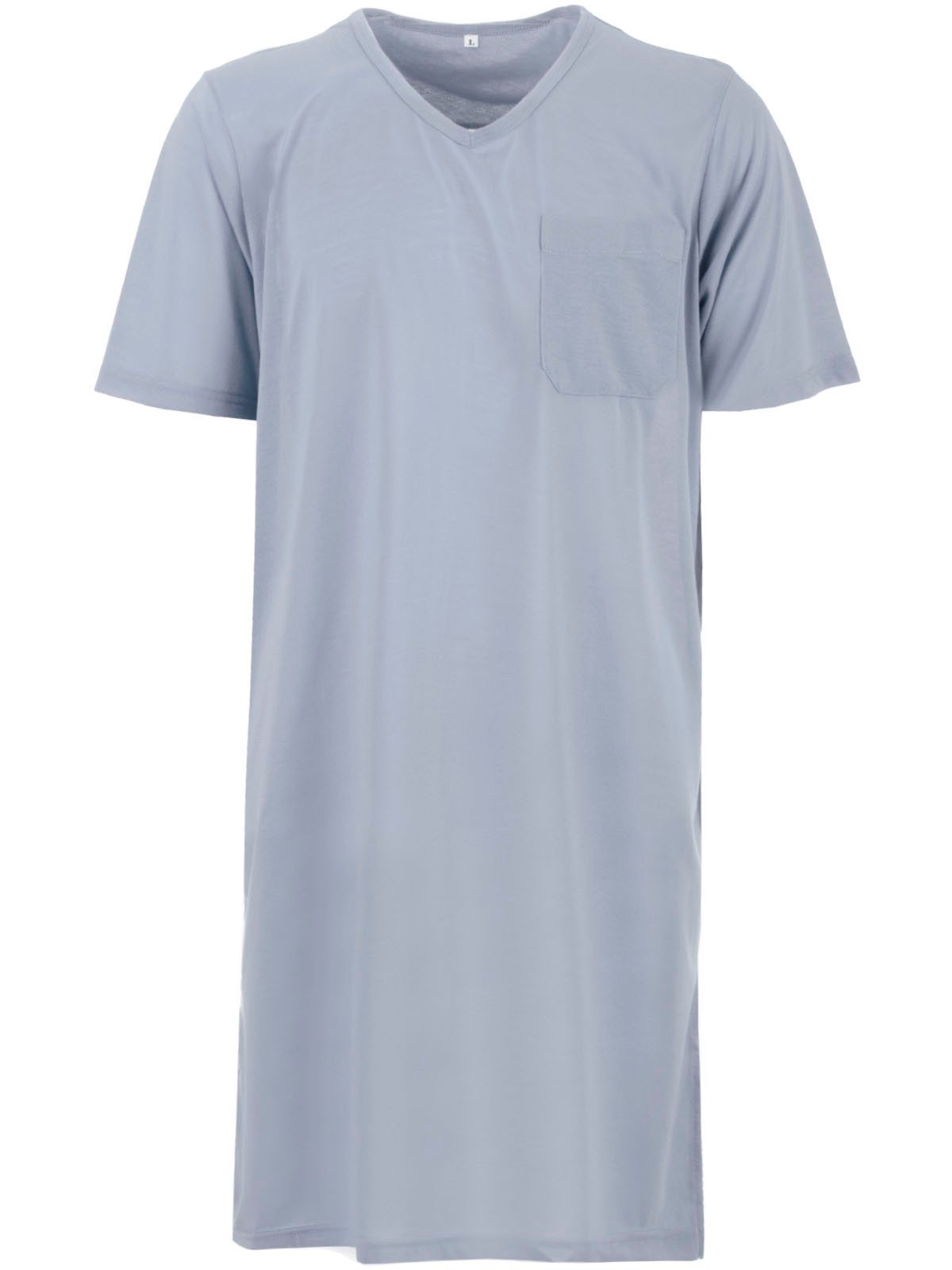 Nachthemd für Herren in klassischer Optik mit V-Ausschnitt. Das Shirt ist angenehm und leicht auf der Haut zu tragen. Unifarbene Brusttasche.