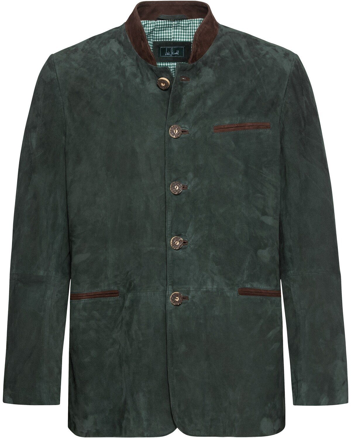 Der Lederjanker für Herren von Luis Steindl ist ein stilvoller Klassiker, der in keinem Kleiderschrank fehlen sollte. Gefertigt aus weichem Ziegenveloursleder, überzeugt er durch seine hochwertige Verarbeitung. Der Kragen, die Taschen und die paspelierten Knopflöcher sind aus dunkelbraunem Leder gefertigt, was dem Janker einen edlen Look verleiht. Mit seinen Paspeltaschen und der Bruststecktasche bietet er ausreichend Stauraum für persönliche Gegenstände. Die Kellerfalte und der Riegel im Rücken sorgen für eine individuelle Passform. Der Ärmelschlitz ist mit zwei Deko-Knöpfen verziert und die imitierten Hirschhornknöpfe aus Echt-Bein runden das Gesamtbild ab. Mit dem Lederjanker ist man stets perfekt gekleidet und strahlt eine zeitlose Eleganz aus. Das Kleidungsstück wurde pflanzlich gefärbt. Oberstoff: 100% Leder; Futter: 100% Baumwolle. Dieser Artikel enthält nichttextile Teile tierischen Ursprungs.