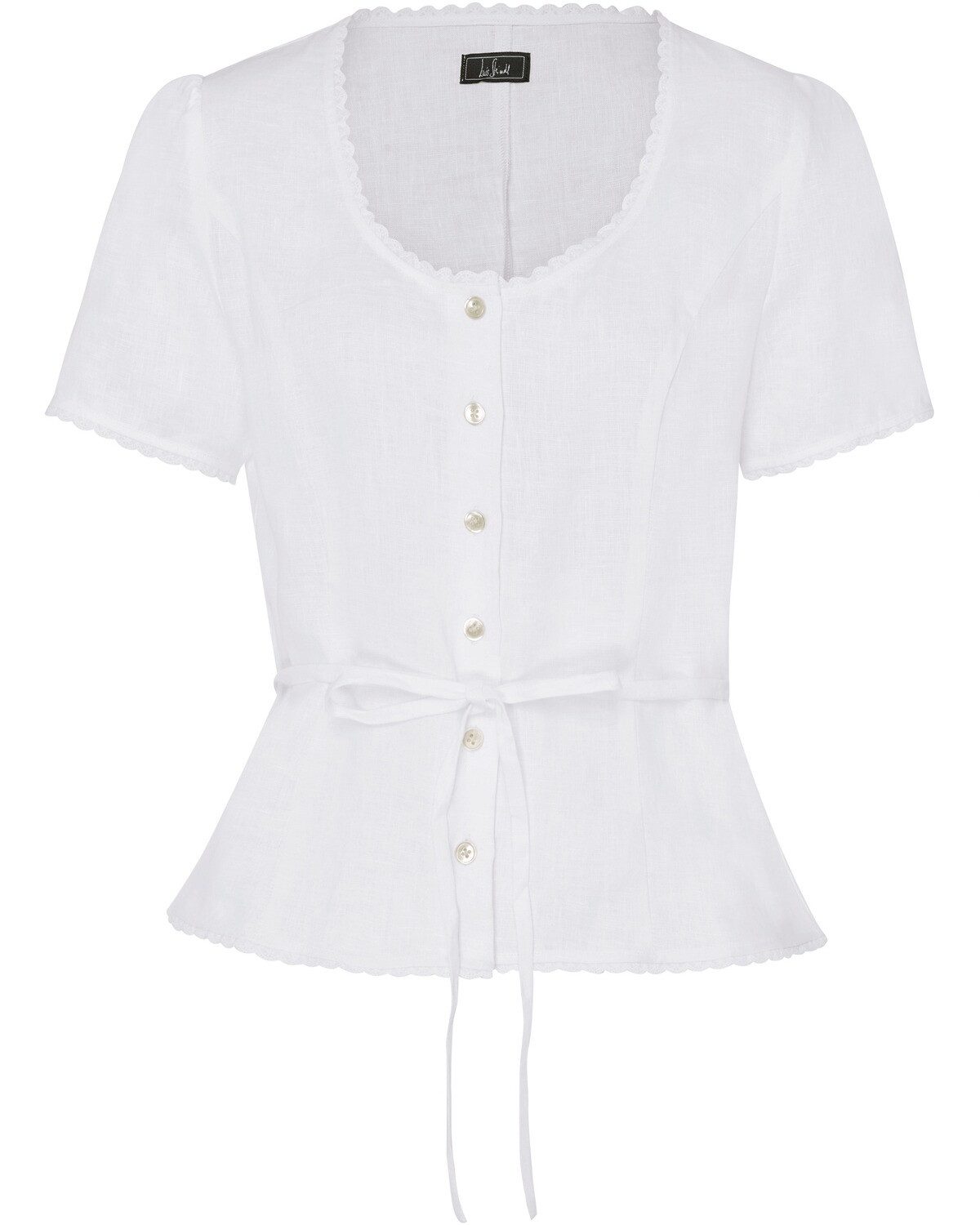 Das Halbarm-Blusentop von Luis Steindl vereint traditionellen Landhausstil mit modernem Design und bietet eine feminine Ergänzung für jede Garderobe. Hergestellt aus hochwertigem Leinen, sorgt das Top nicht nur für ein angenehmes Tragegefühl, sondern auch für eine luftig leichte Beschaffenheit, die ideal für warme Tage ist. Der Rundhalsausschnitt verleiht dem Oberteil eine feminine Note, während die Kanten mit kleiner Spitze einen Hauch von Romantik hinzufügen. Besondere Akzente setzen die Puffärmel, die dem Blusentop eine verspielte Silhouette verleihen und gleichzeitig den klassischen Charme unterstreichen. Die Perlmuttknöpfe entlang der Vorderseite sind nicht nur funktional, sondern auch stilvolle Details, die das Gesamtbild abrunden. Diese durchdachten Elemente machen das Top zu einem vielseitigen Kleidungsstück, das sowohl im Alltag als auch zu besonderen Anlässen getragen werden kann. Die Taillenregulierung durch eine Schleife im Rücken ermöglicht eine individuelle Anpassung und sorgt für eine schmeichelhafte Passform. Diese Kombination aus Stil und Funktionalität macht das Halbarm-Blusentop zu einem Must-have für modebewusste Frauen, die Wert auf Qualität und zeitlose Designs legen. Ob zu Jeans, Röcken oder Shorts, dieses Blusentop lässt sich vielseitig kombinieren und wird schnell zum Lieblingsstück in jeder Garderobe. Oberstoff: 100% Leinen