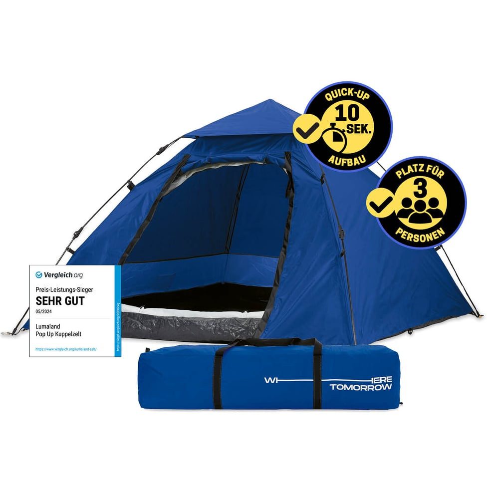 Ausstattung | 1x Where Tomorrow Pop Up Kuppelzelt Wurfzelt - 2-3 Personen - Blau |