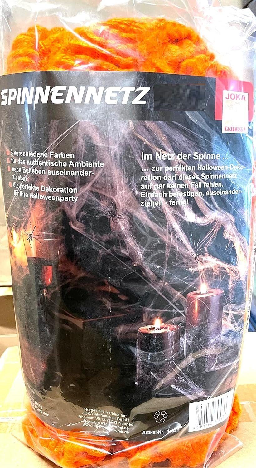 Super tolles Spinnennetz 350 g in der Farbe Orange. Zur Halloween-Dekoration darf ein Spinnennetz auf keinen Fall fehlen. Dekorieren Sie es mit kleinen Plastikspinnen und schon kann das Gruseln losgehen. Ein absolut authentisches Ambiente garantiert! Einfach befestigen, auseinanderziehen und dan ist die Deko fertig 1. Bild ist ein Beispielbild Sie erhalten das 350-GrammNetz in der Farbe ORANGE.