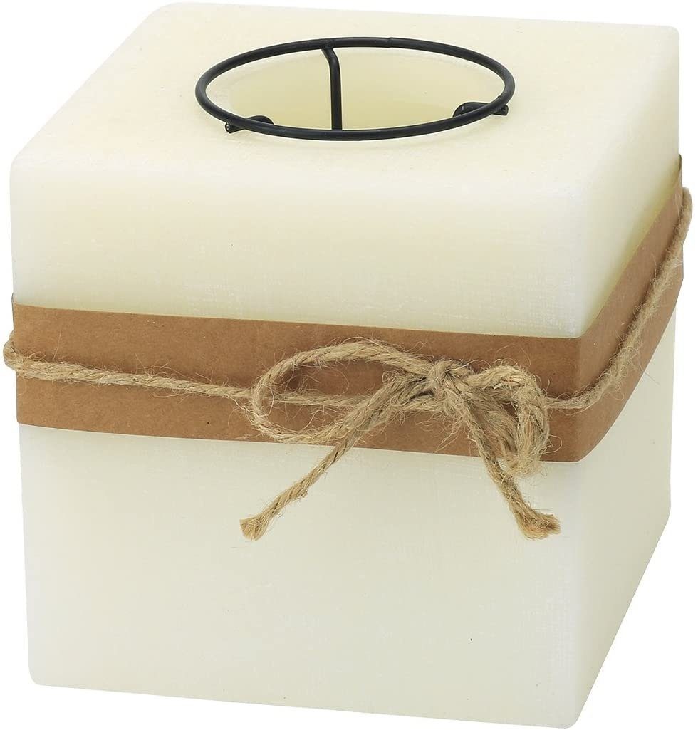 Echtwachskerzenhalter eckig Dekorativer Echtwachs-Kerzenhalter für ein tolles Ambiente! Dieser Kerzenhalter aus Echtwachs sorgt für eine besondere Atmosphäre in jeder Räumlichkeit. Setzen Sie die Teelichte (nicht enthalten) in das Metallgestell innerhalb des Kerzenhalters und lassen Sie sich vom Kerzenschein verzaubern. (LxBxH) Ca. 15x15x15cm Lieferumfang/Produktdetails: - Kerzenhalter aus Echtwachs - Teelichte nicht enthalten - Inkl. Metallgestell